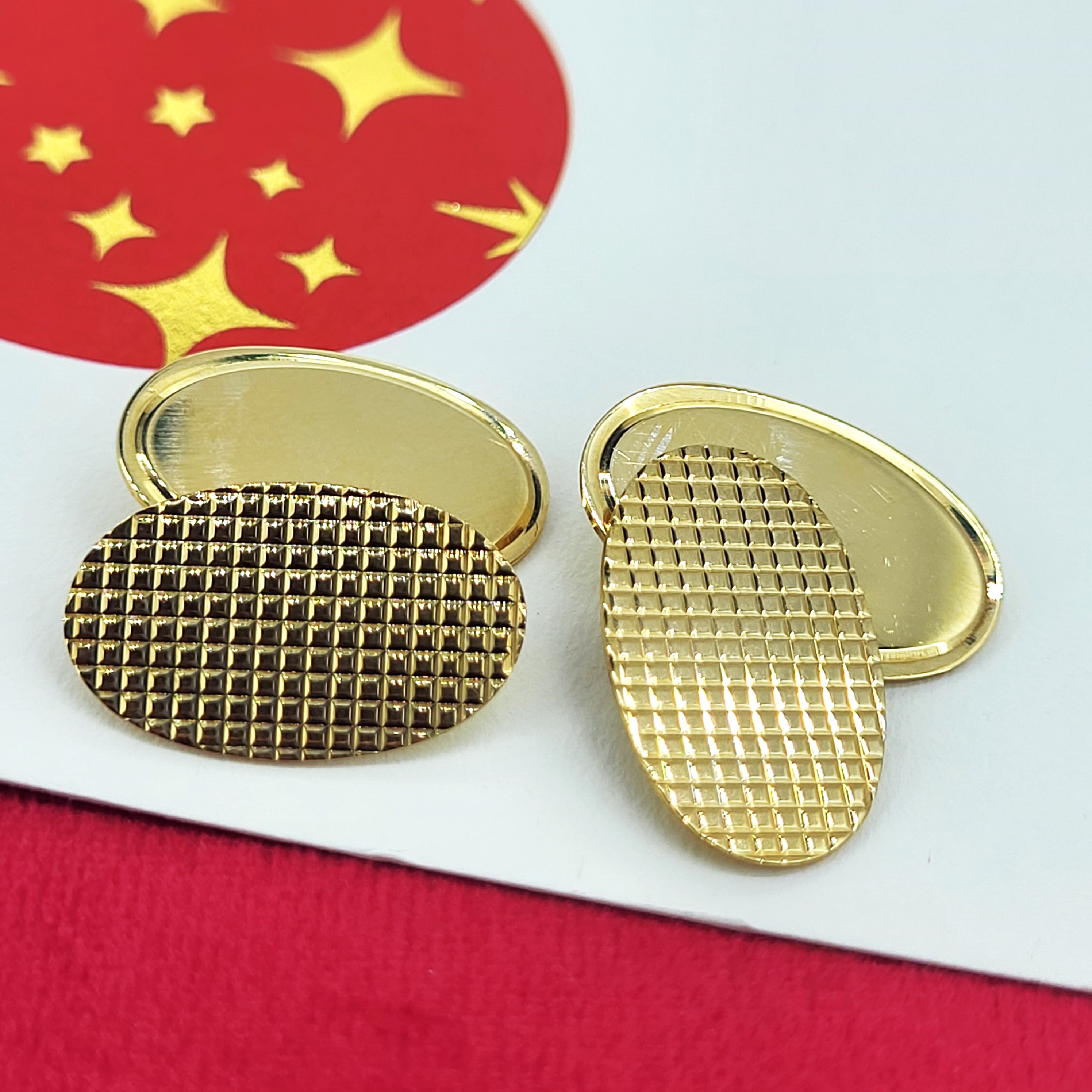 These cufflinks measure 11mm by 18mm, with one side engraved with a checkerboard style pattern and the other side left plain, which is suitable for engraving. These cufflinks are lightweight weighing 4.6 grams and are wonderfully discreet.
