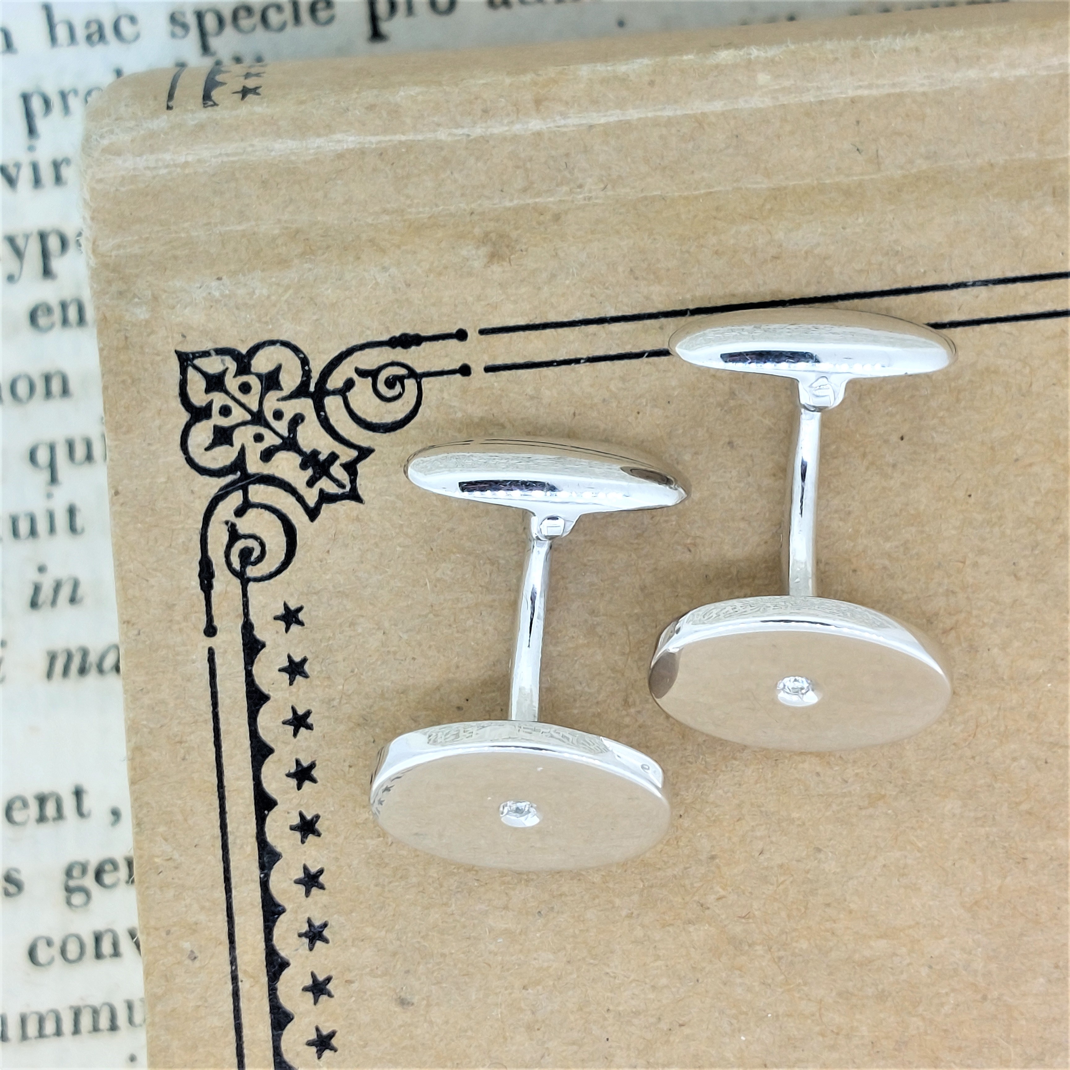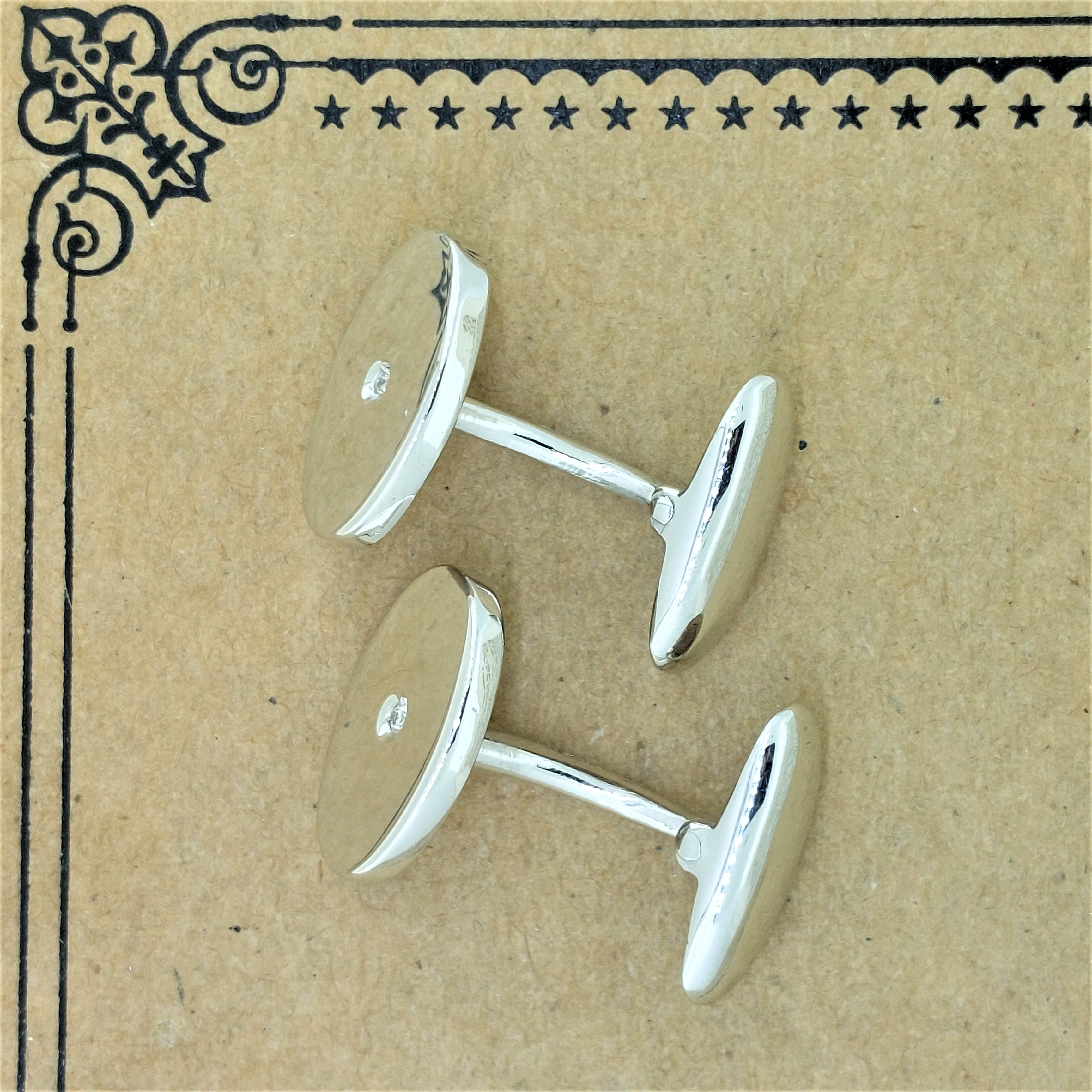 The diamonds are rub-over set so the setting is nice and smooth and cufflinks have a polished finish.