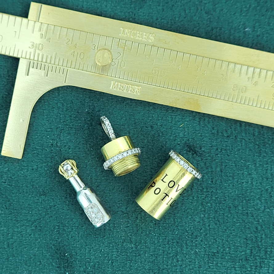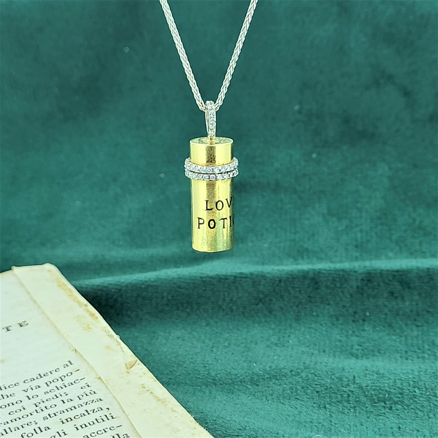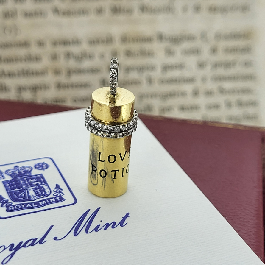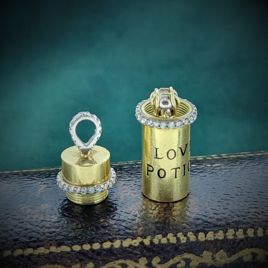 This is craftsmanship at the next level. A truly unique 18ct Gold and Diamond 'Love Potion' charm with two rows of fabulously executed Round Brilliant Cut Diamonds and a diamond bail.