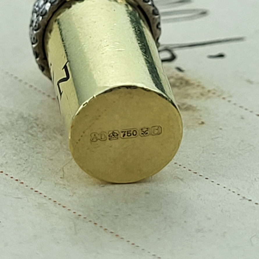 The charm unscrews where the diamonds meet and inside is a removable champagne bottle with a diamond label. The cork is secured by 18ct Yellow Gold wire.