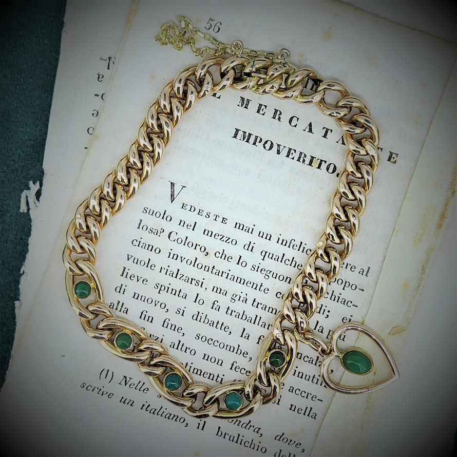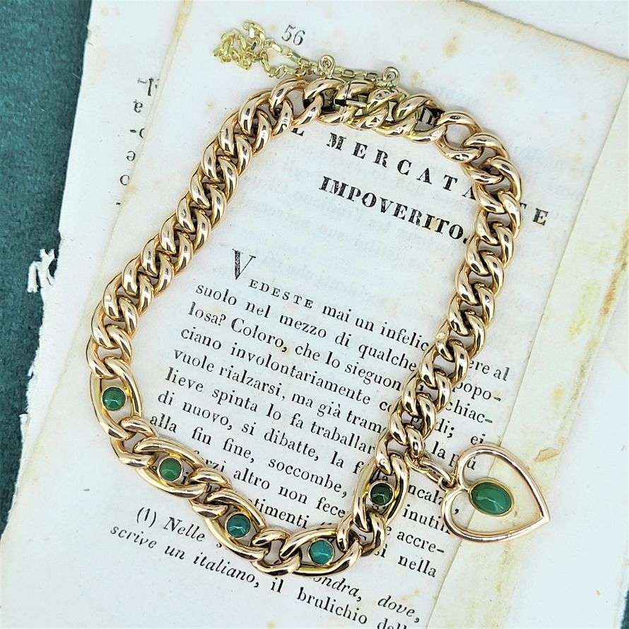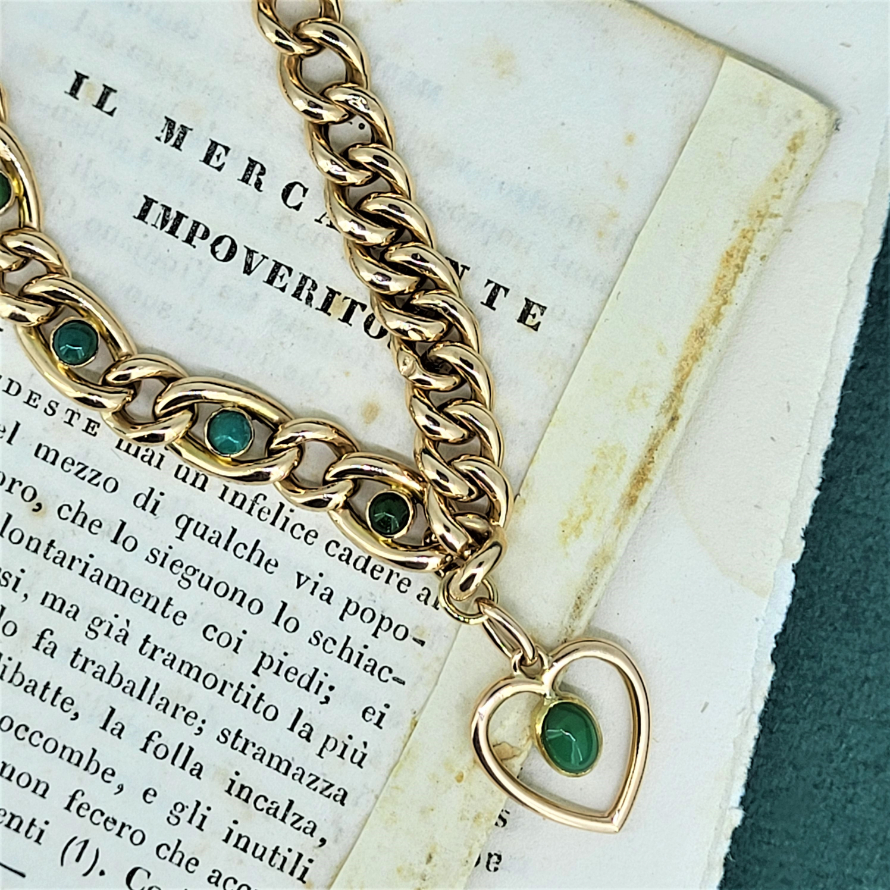 The Bracelet is set with Jade gemstones and decorated with a 15ct heart charm which also has Jade inside the setting.