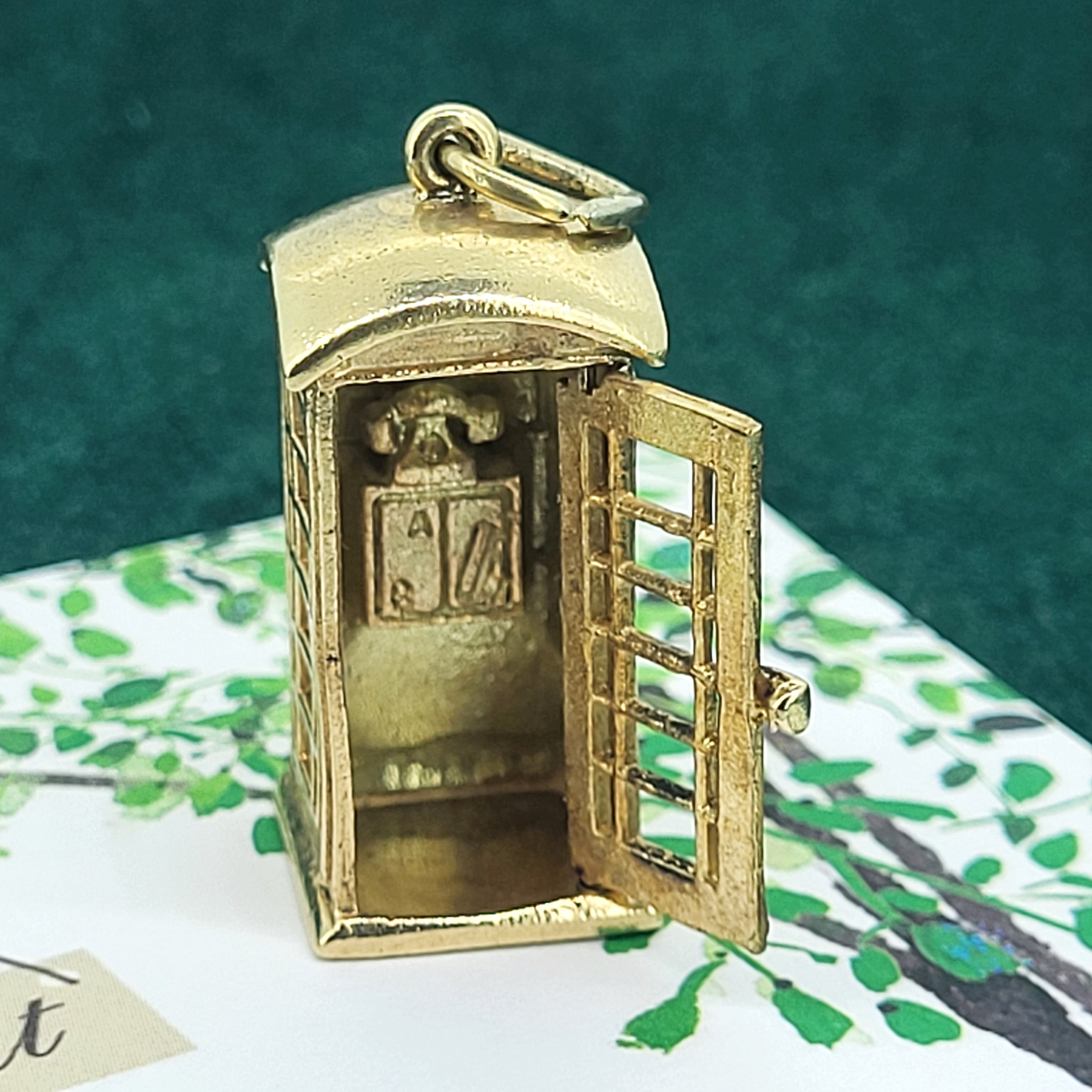 A really lovely Old Telephone Box Charm crafted from 9ct Yellow Gold.