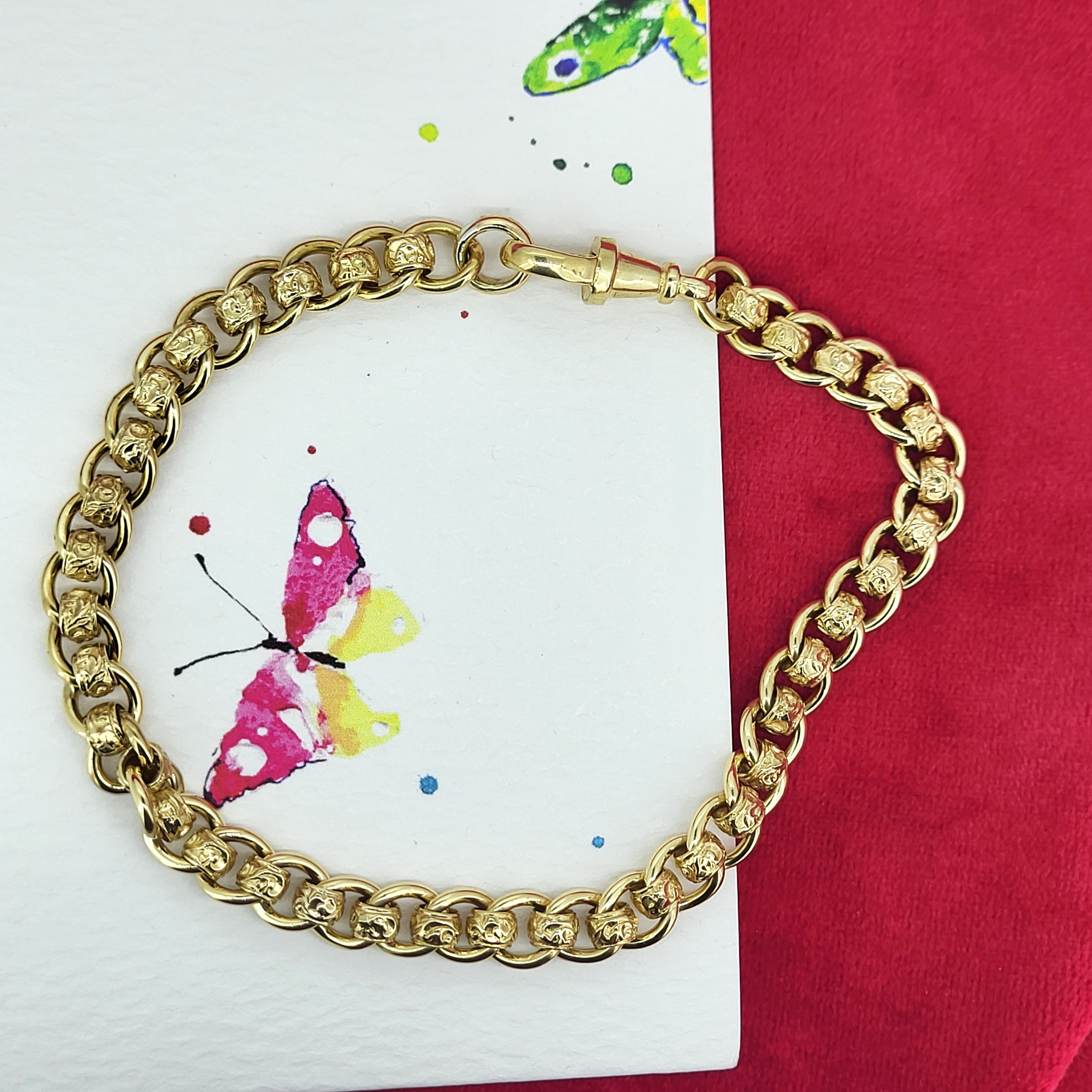 The links measure 8mm in width and the bracelet weighs 26.2 grams. The patterned links are a wonderful contrast to the plain and the swivel fitting is the perfect fitting for this bracelet.