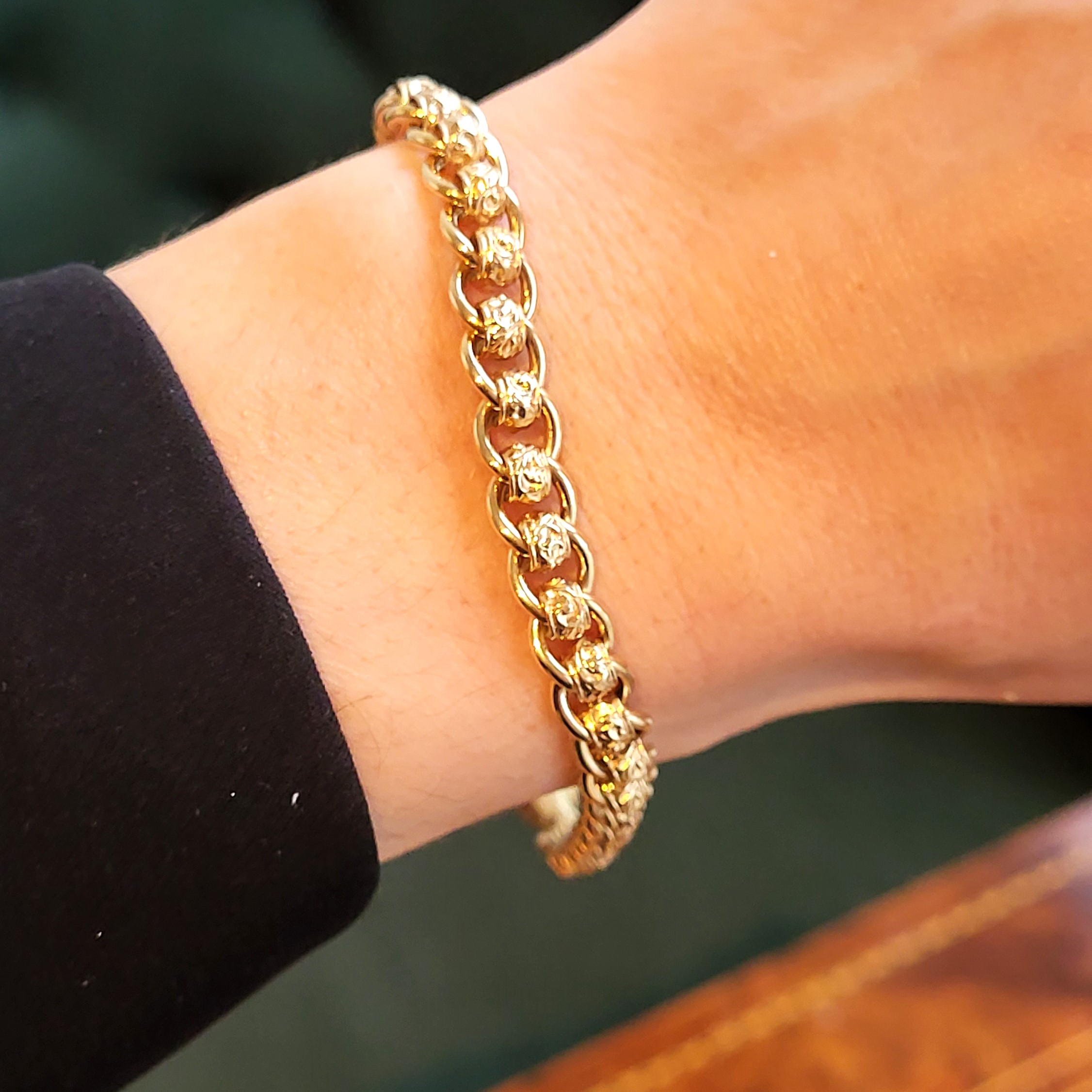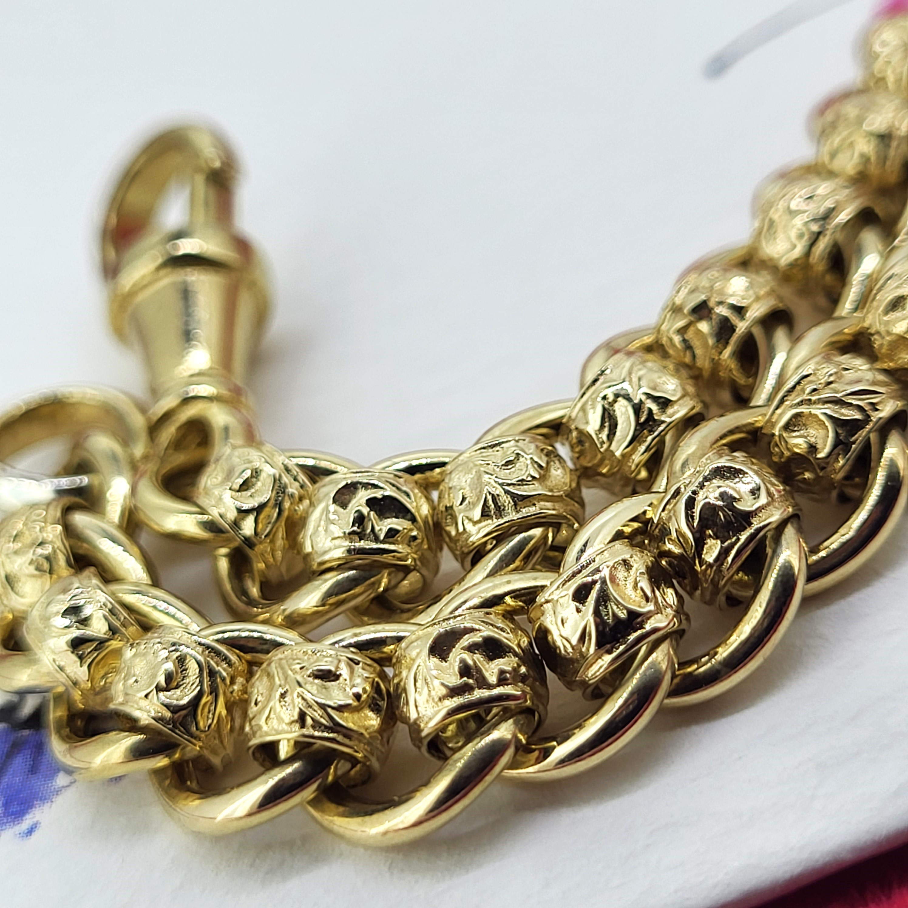 A gorgeous Patterned and Plain Rollerball Bracelet crafted from 9ct Yellow Gold.