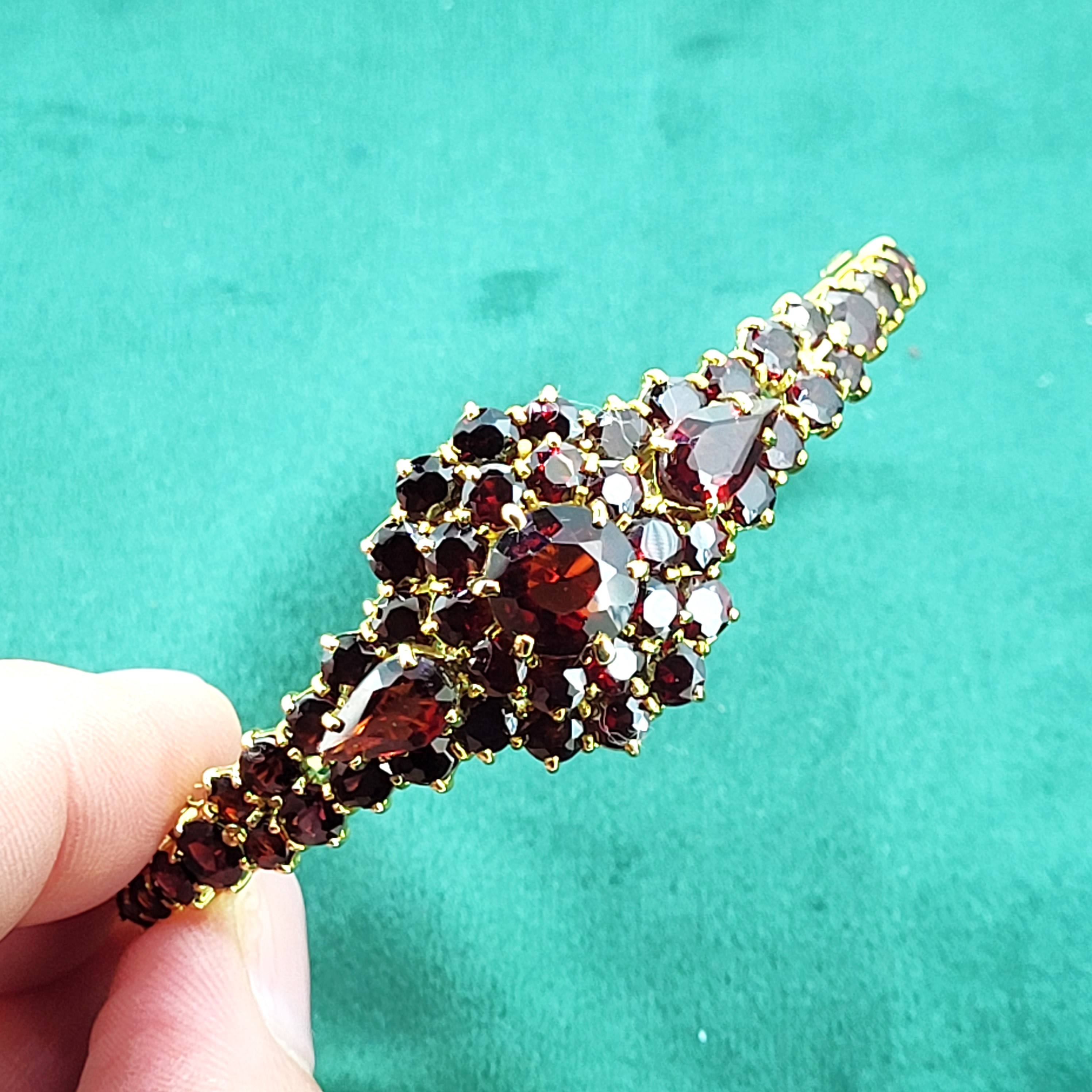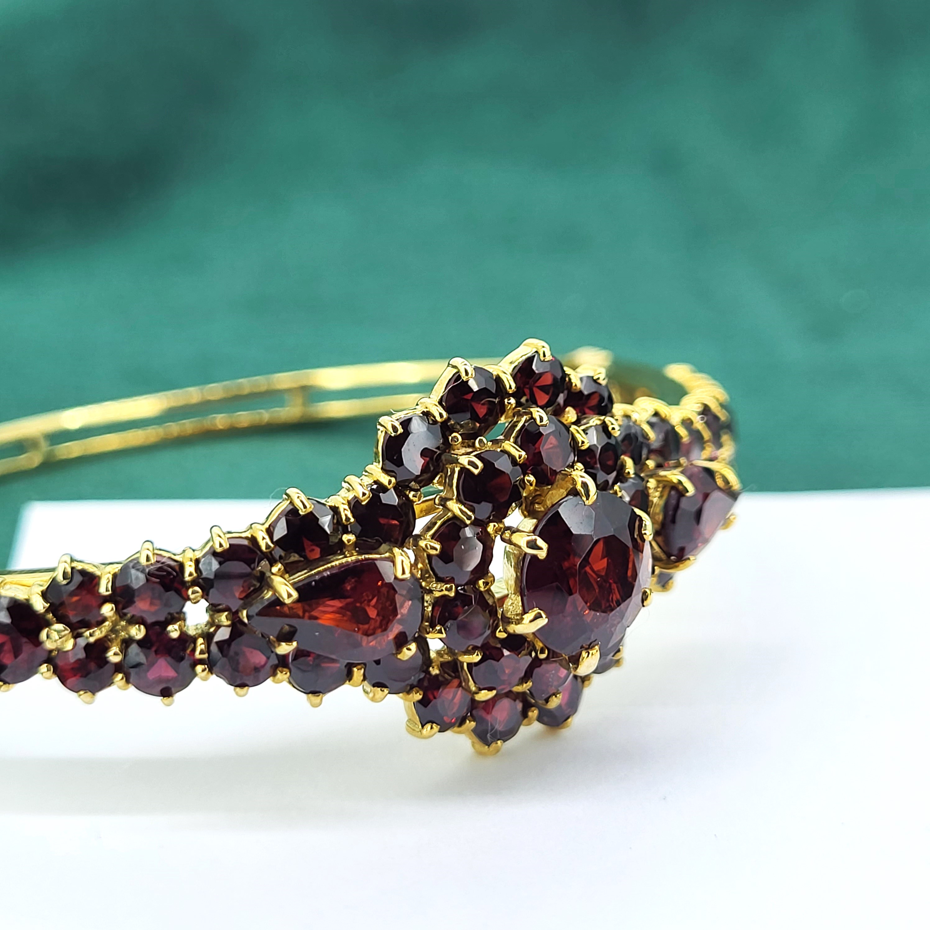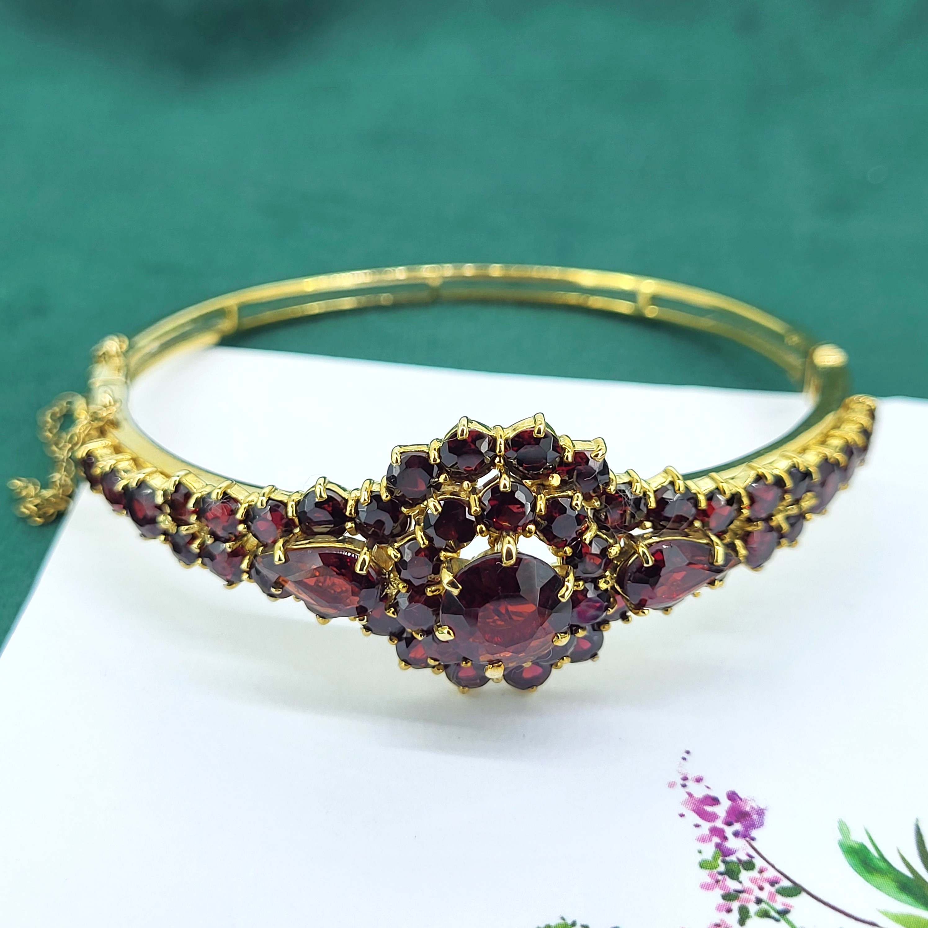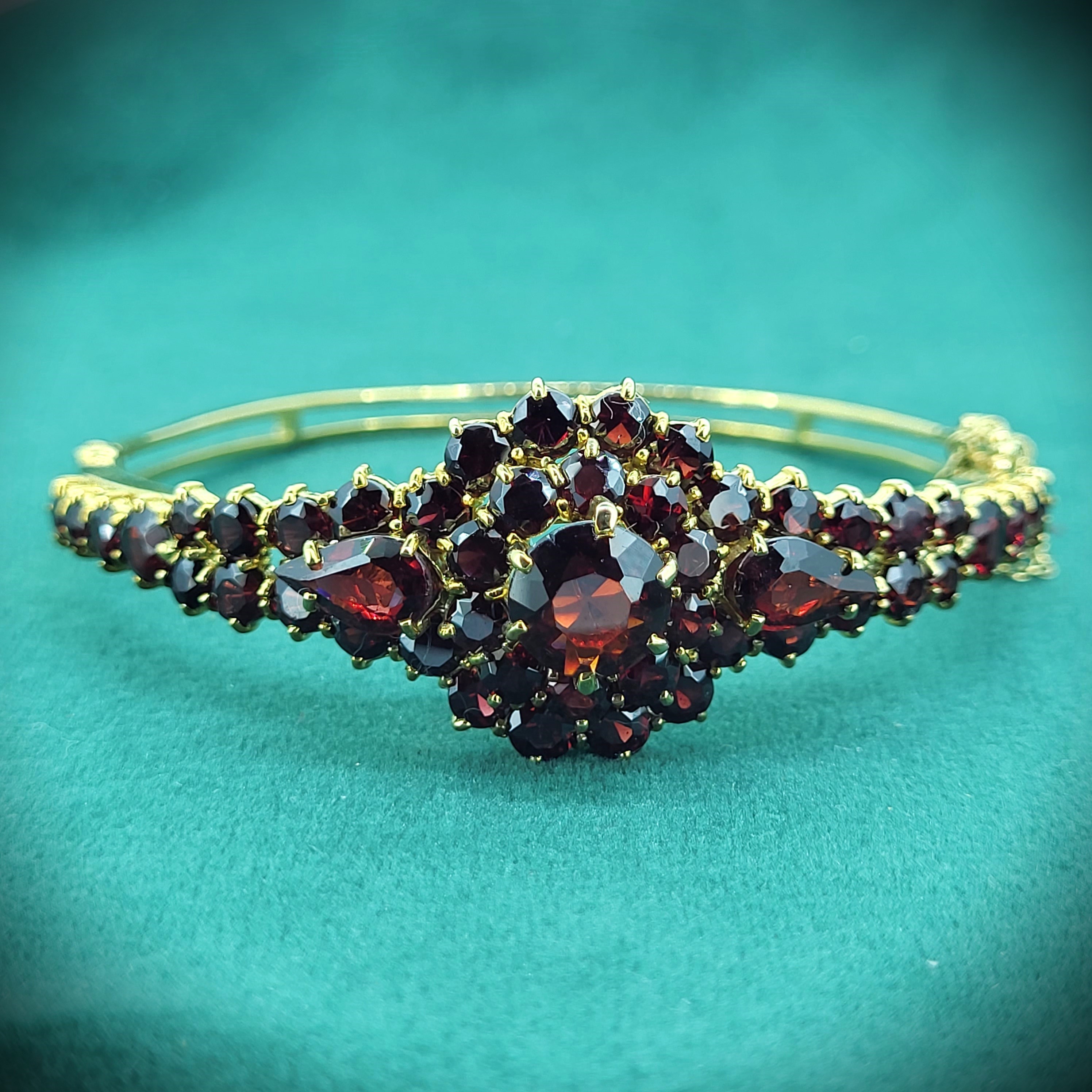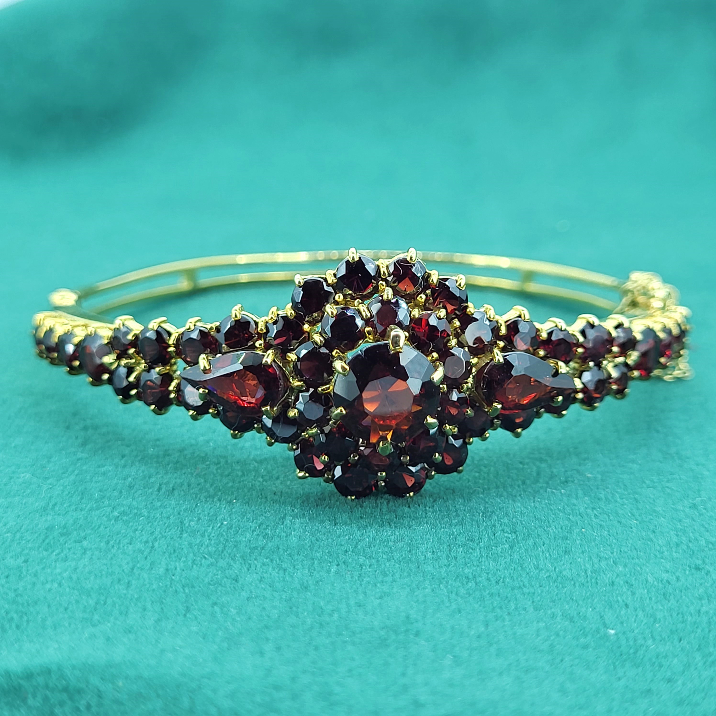 A gorgeous Victorian Bohemian Starburst Garnet Bangle crafted from 9ct Yellow Gold.