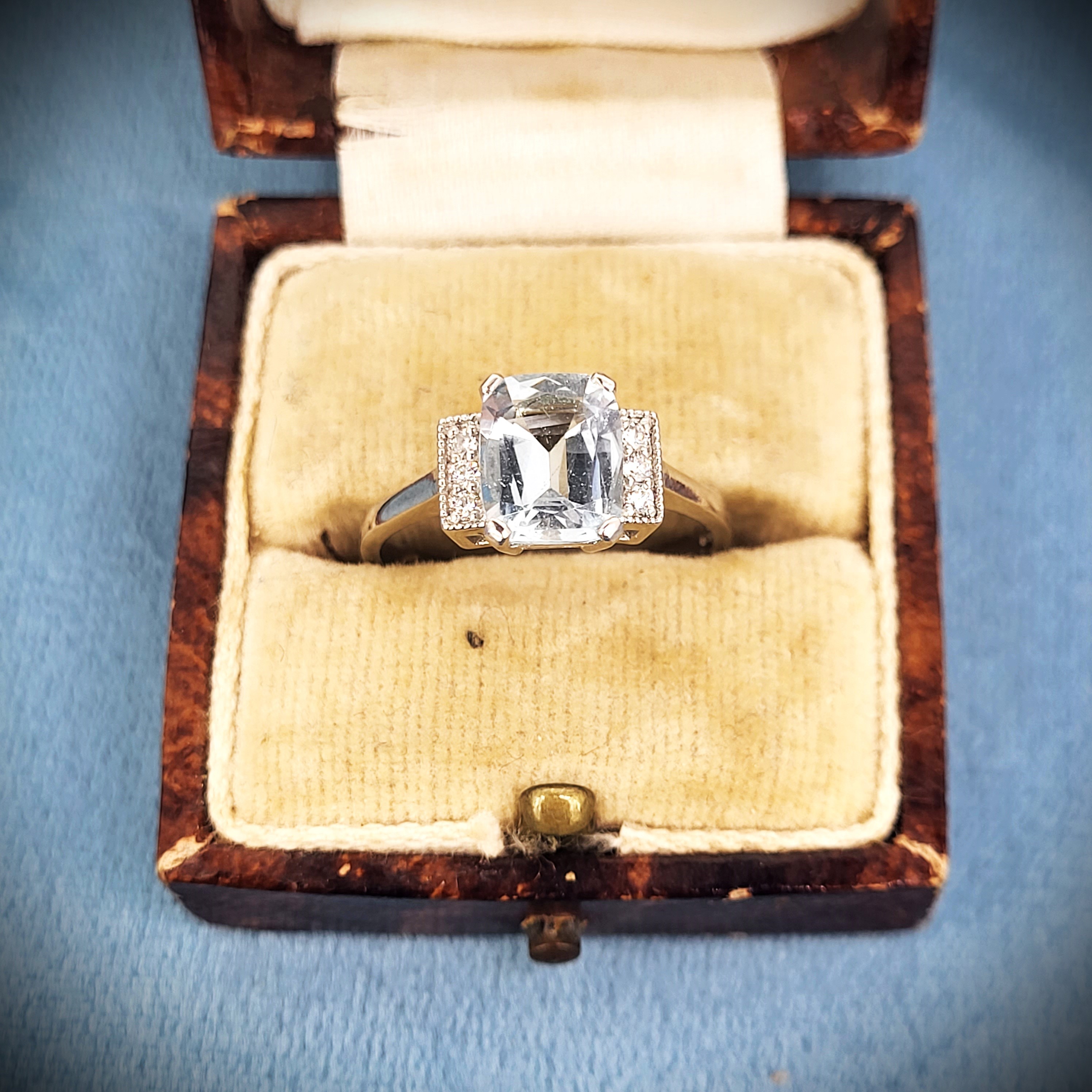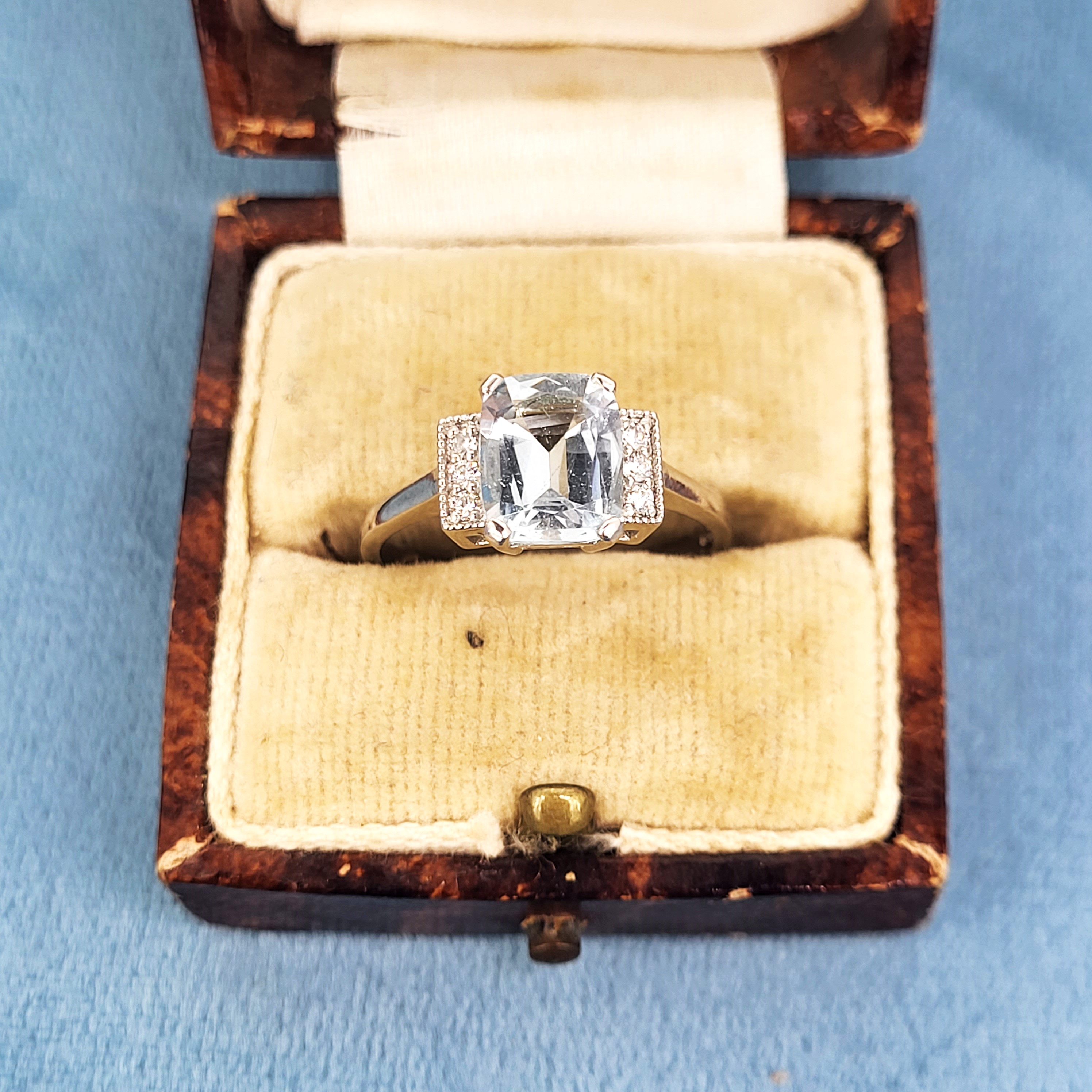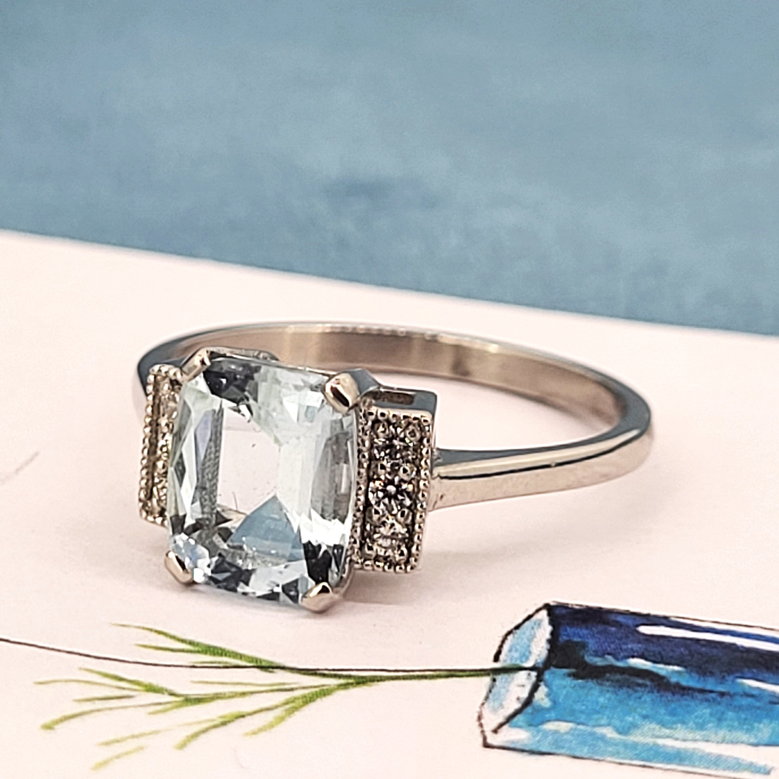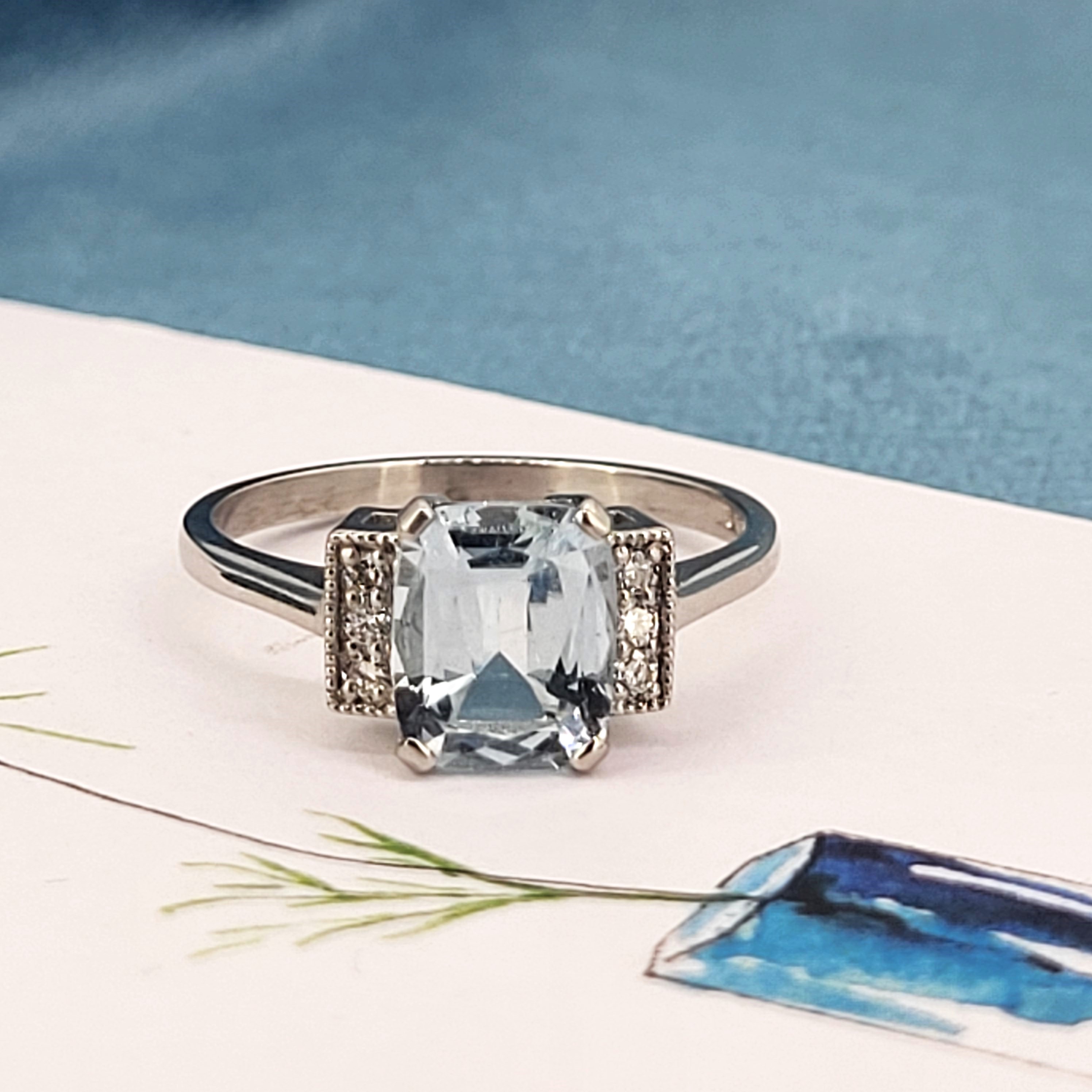 A delightfully pretty Aquamarine and Diamond Art Deco Ring in Platinum.