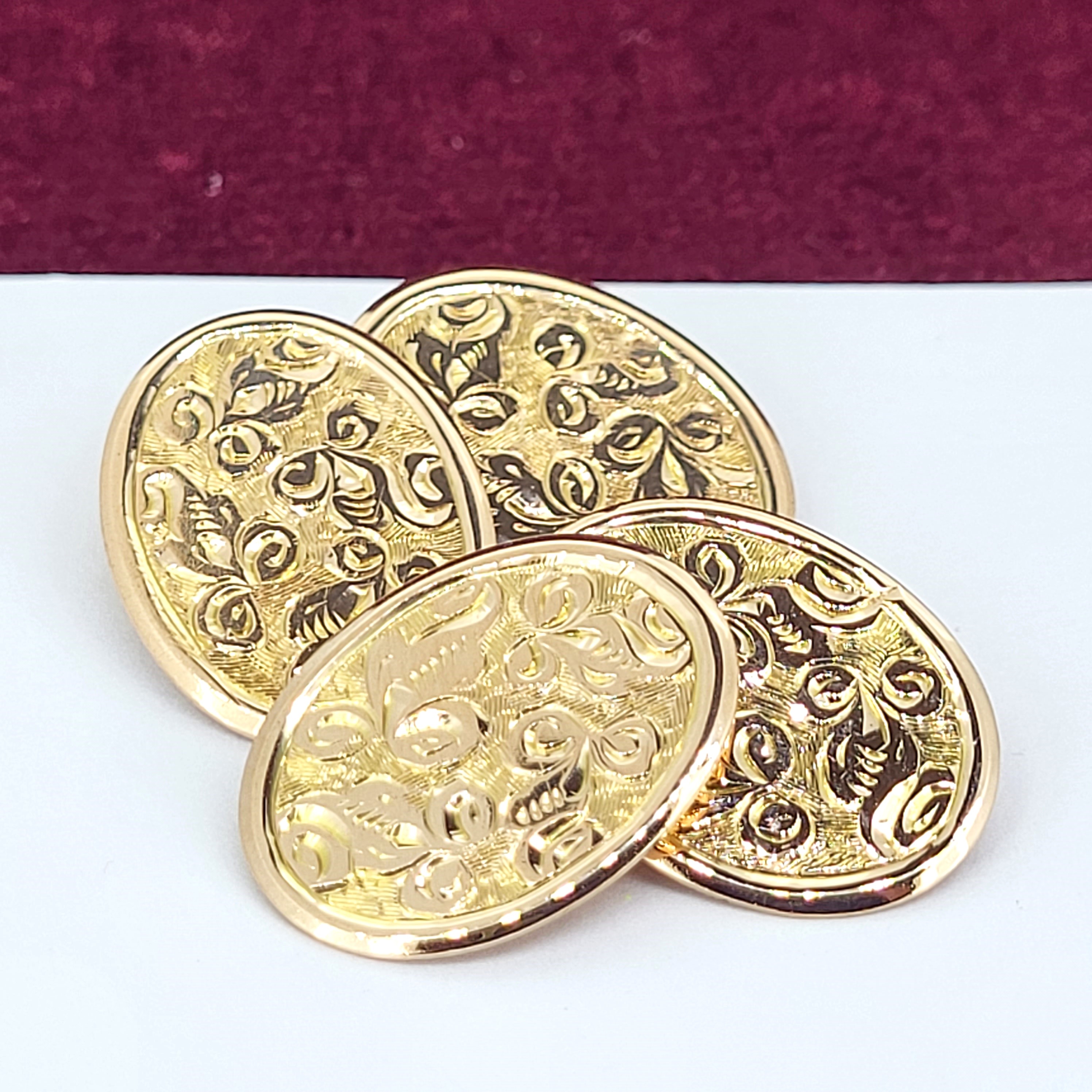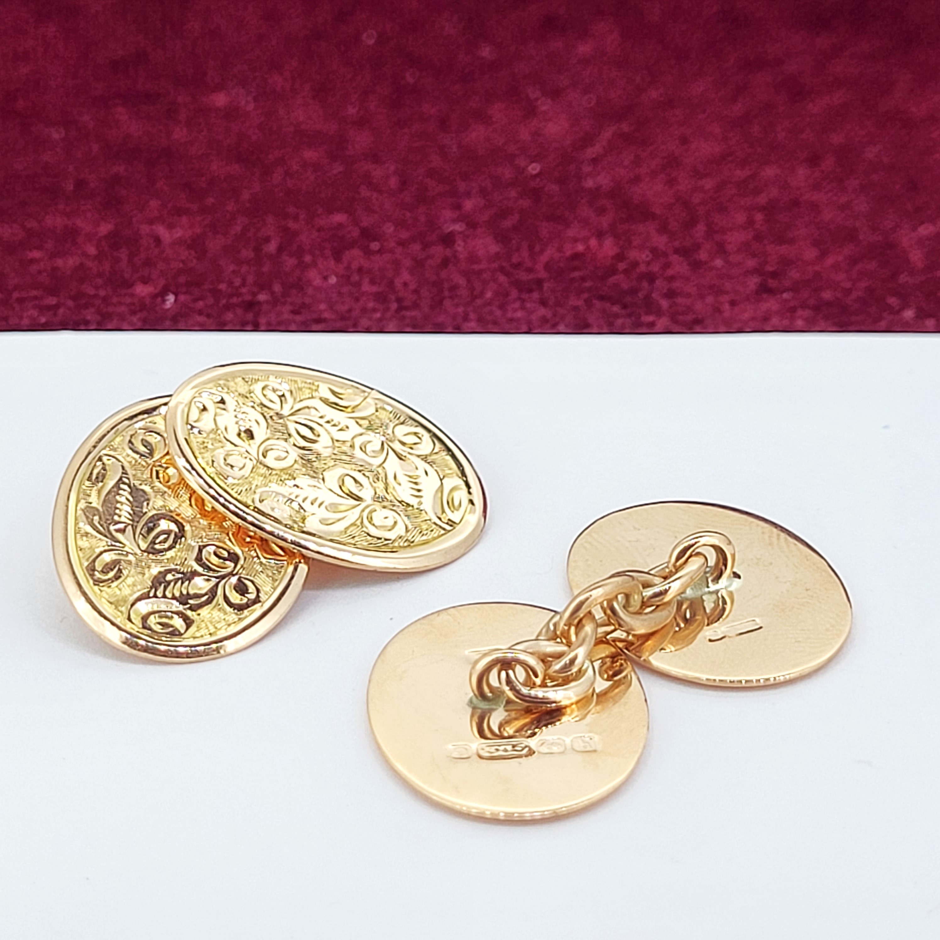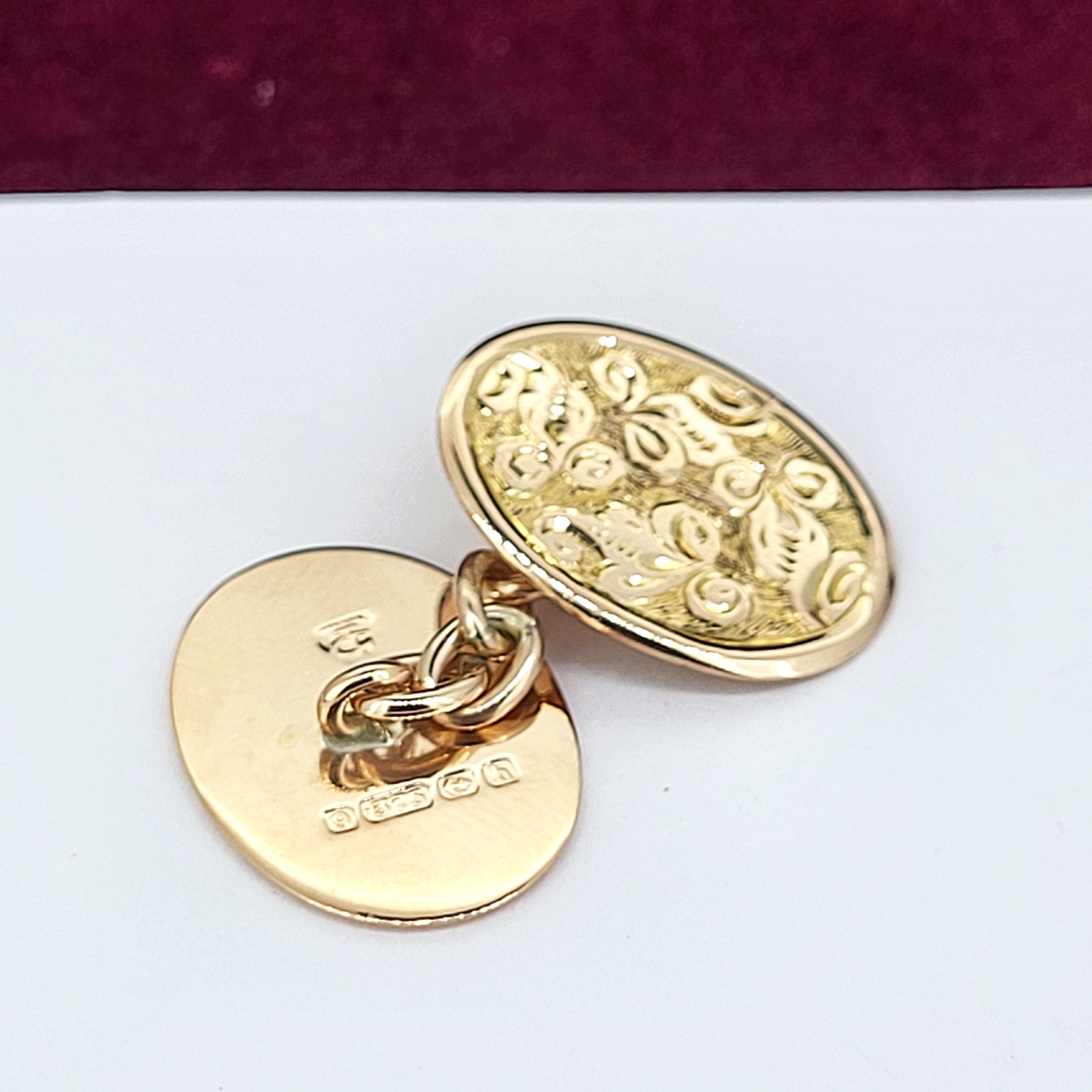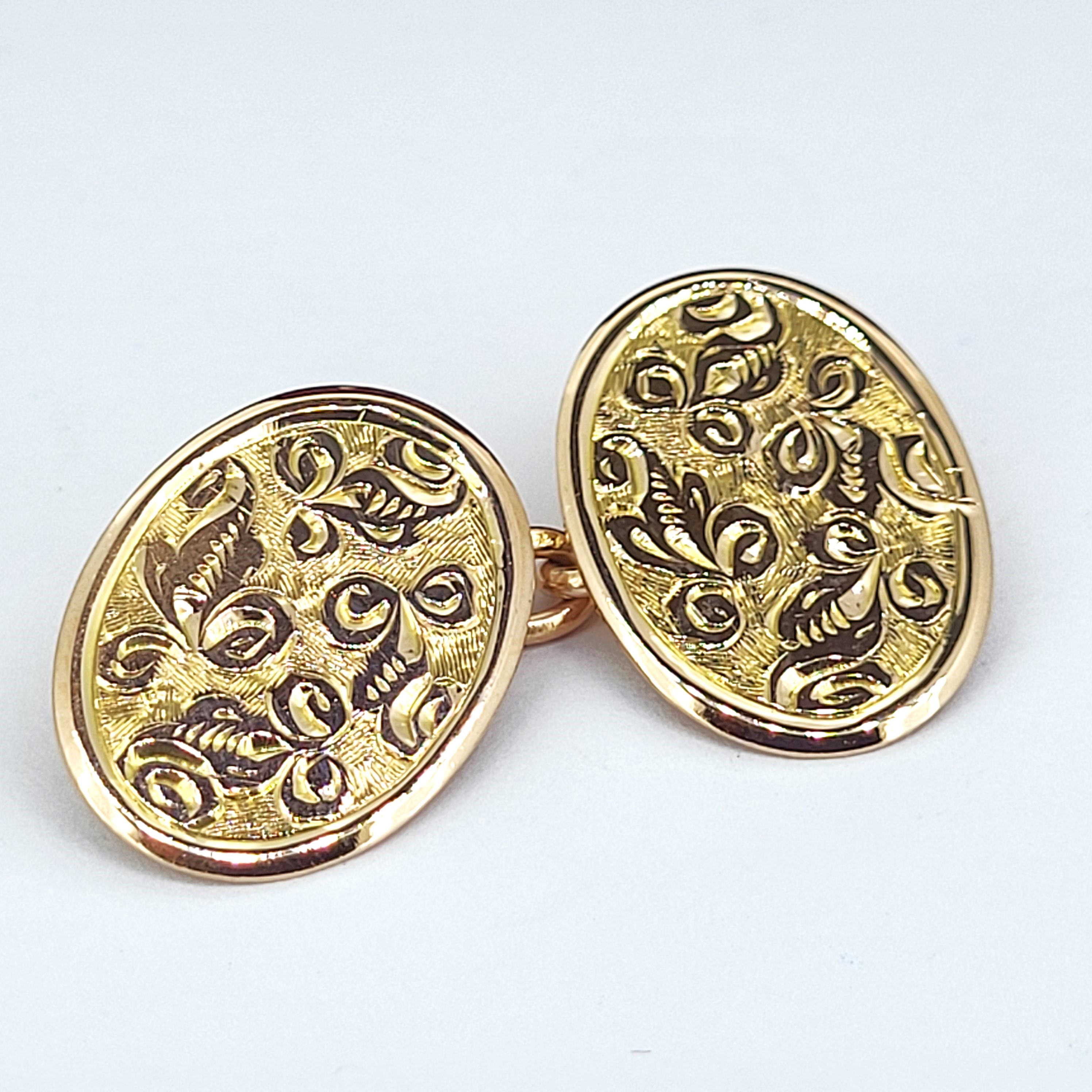 Gorgeous 9ct Yellow Gold Cufflinks with Hand Engraved scroll work.