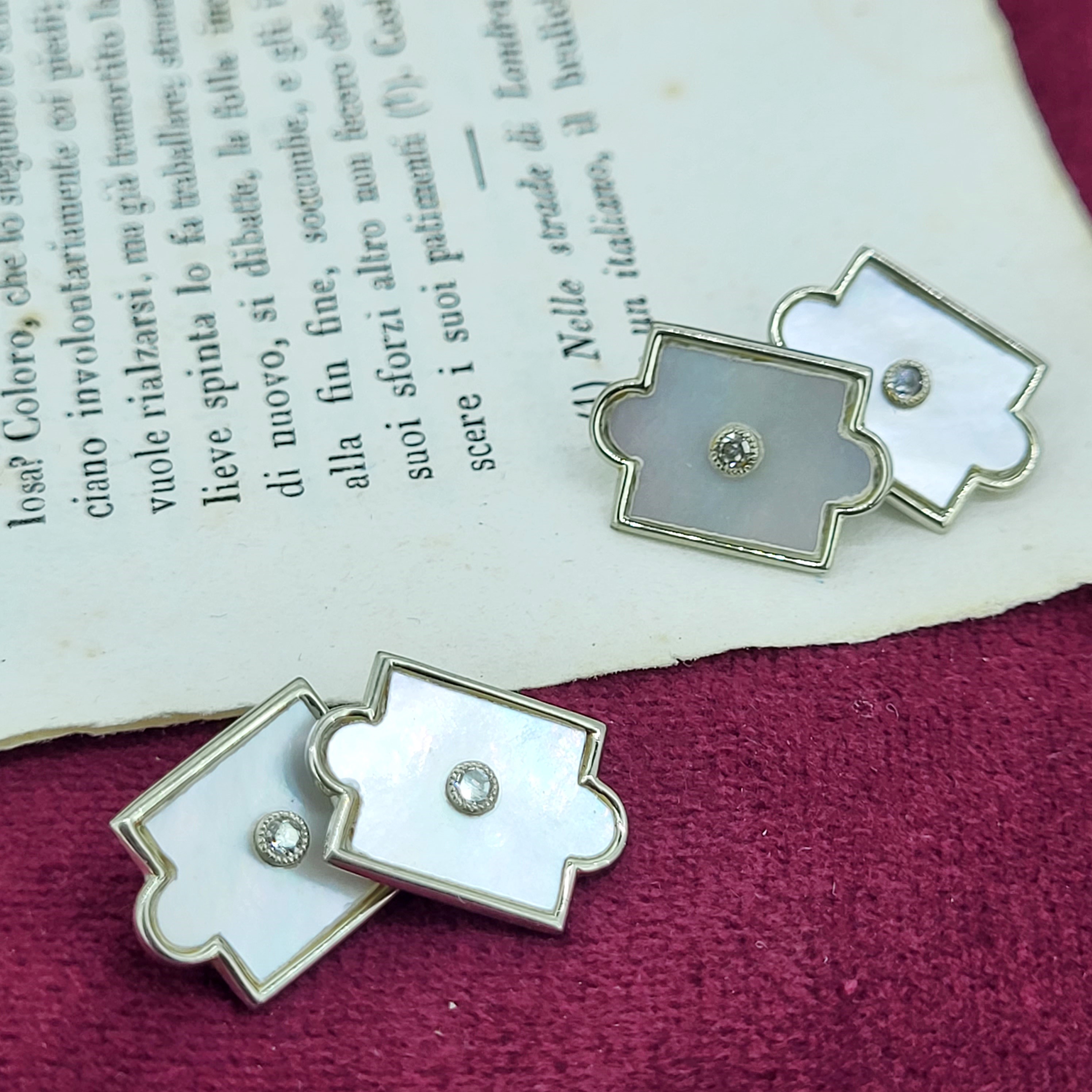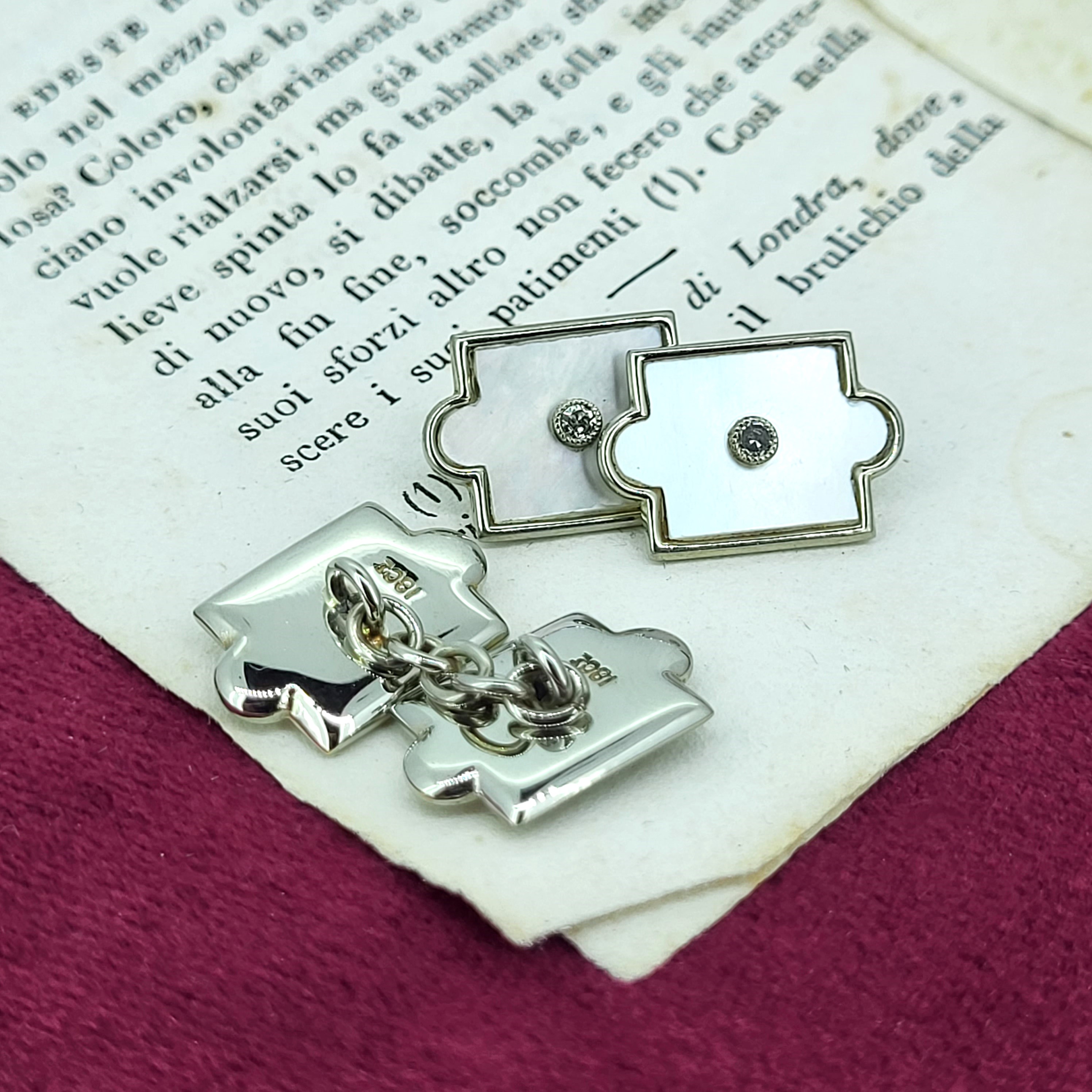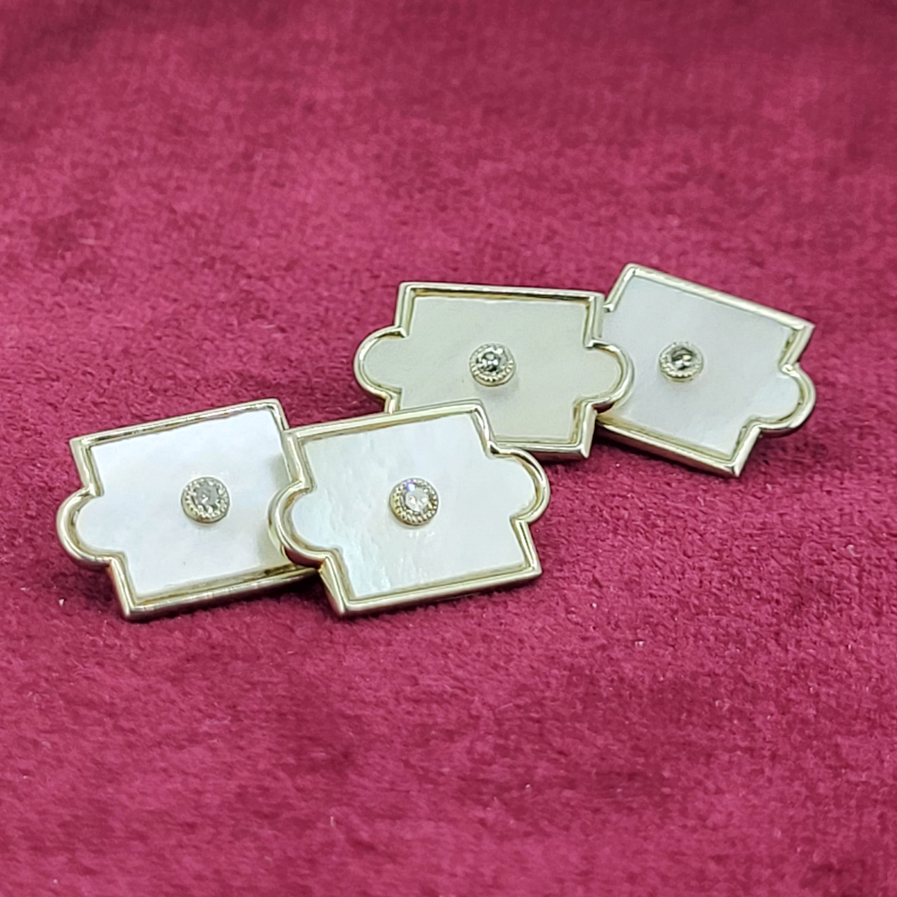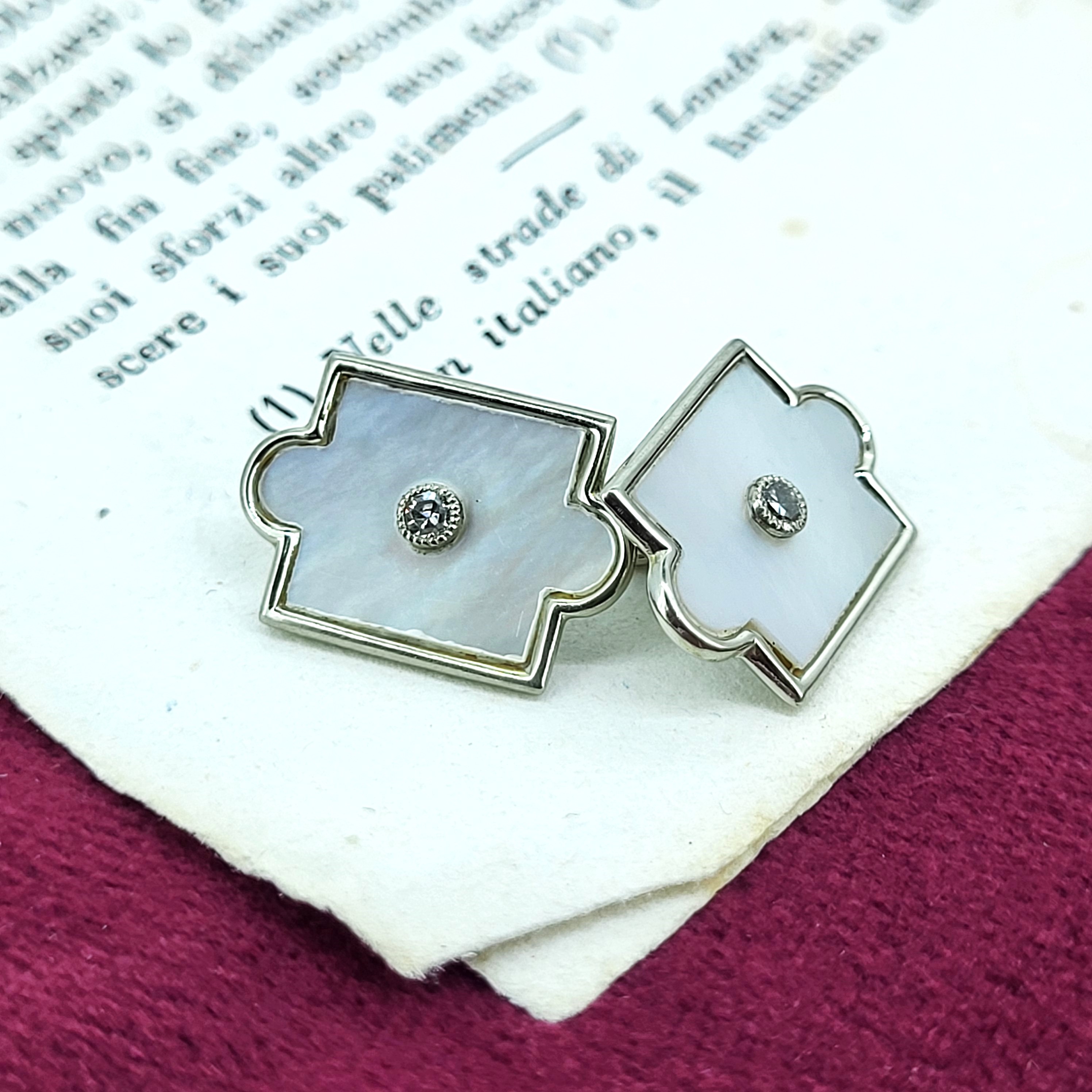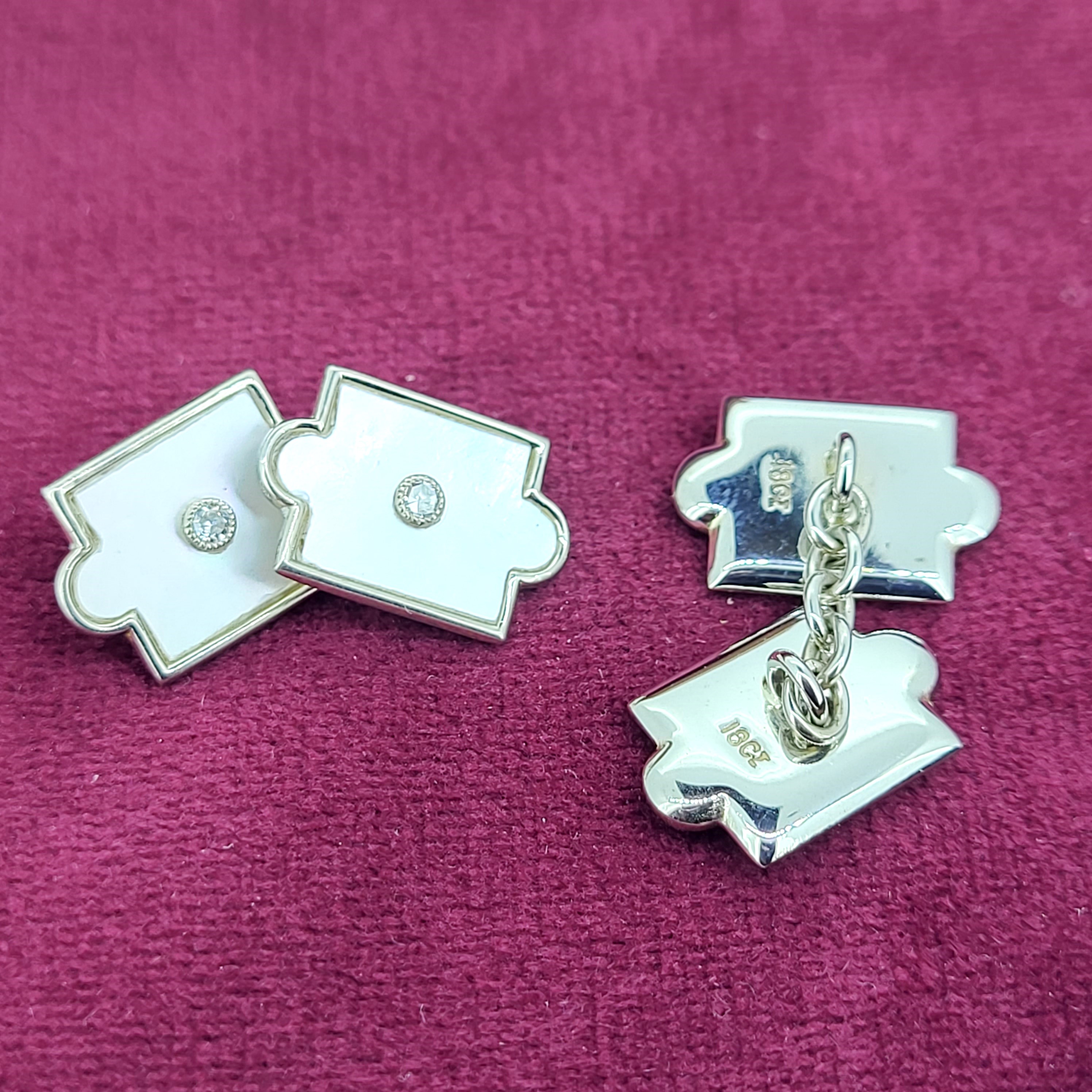 Gorgeous Mother of Pearl and Diamond Cufflinks crafted from 18ct Gold.