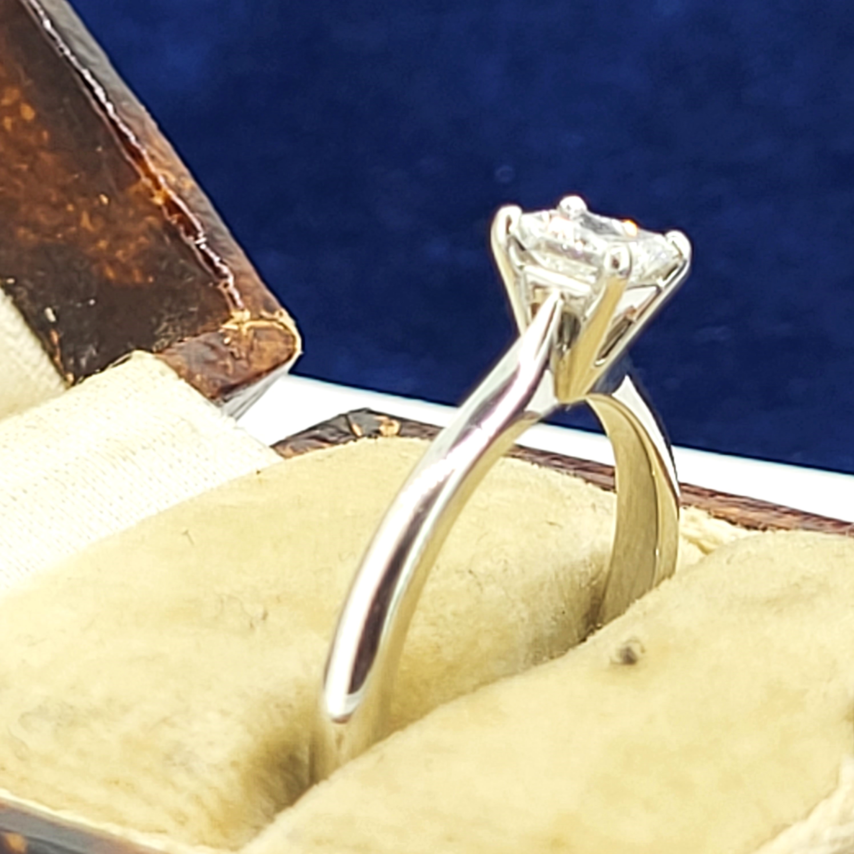 This beautiful Princess Cut Solitaire crafted from Platinum is bound to catch the attention of others.