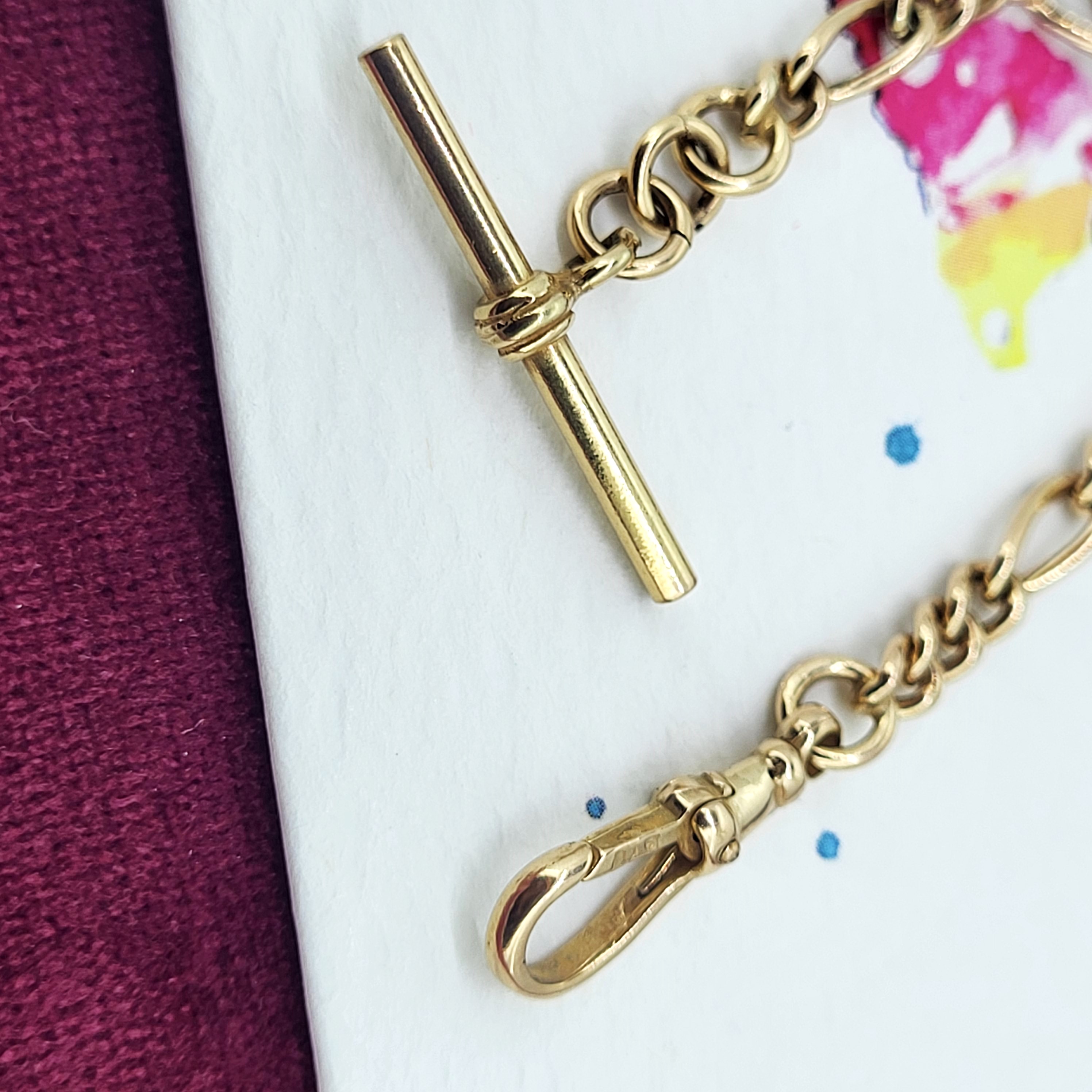 The links are uniformed and measure 3.8mm in width. It features a 25mm T-Bar and is fitted with a Swivel fitting for security.