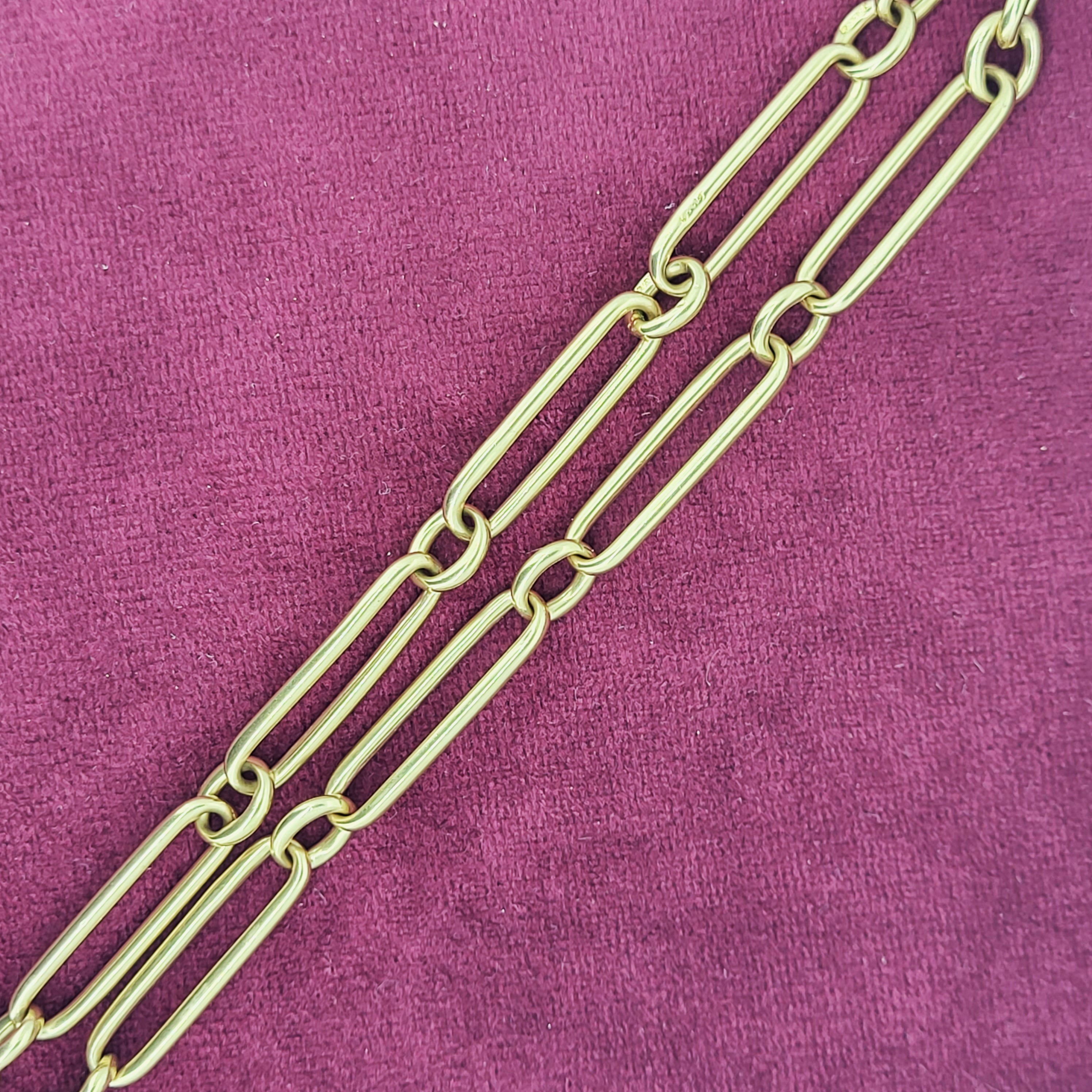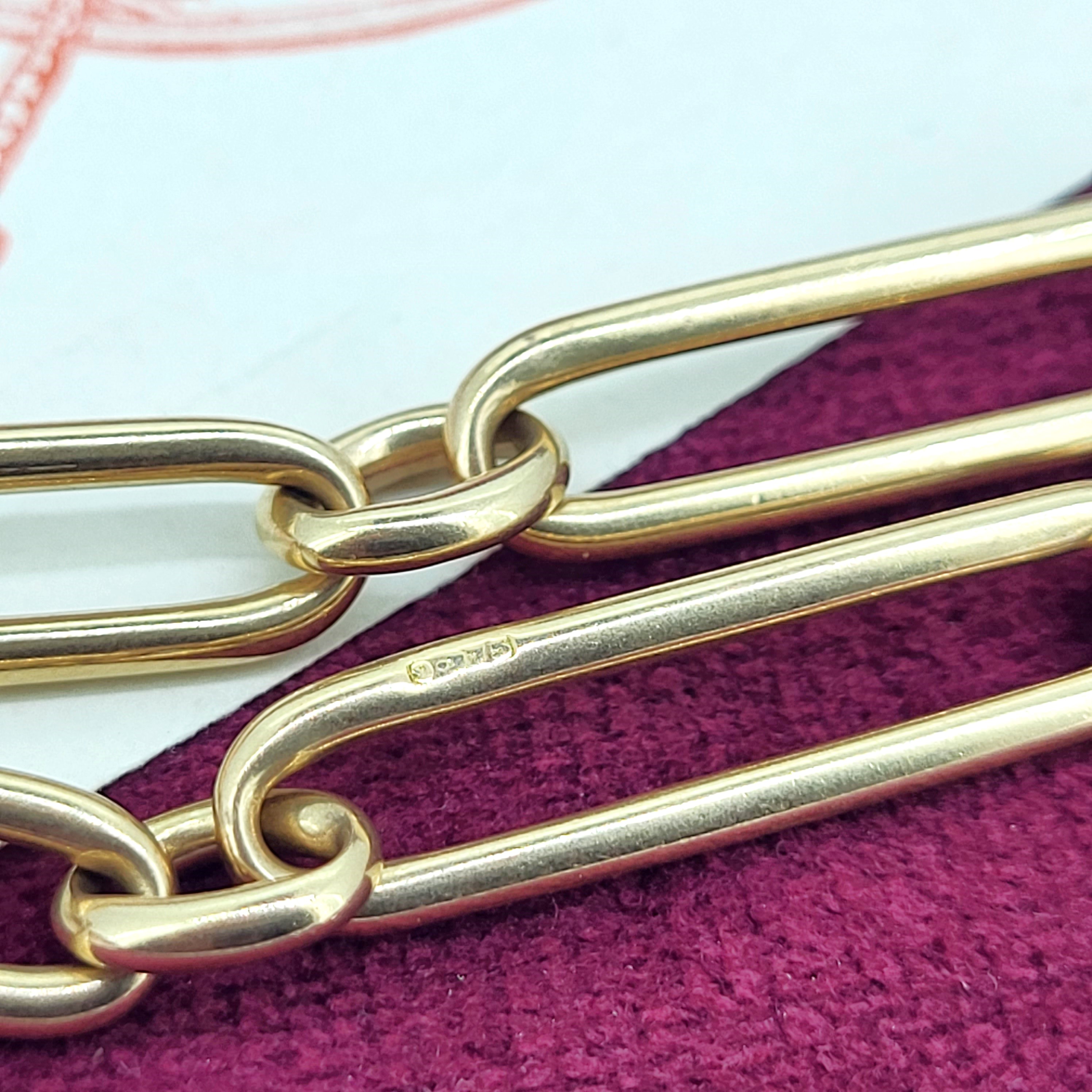 The bracelet features Paperclip links that measure 6.3mm in width and are all individually stamped.