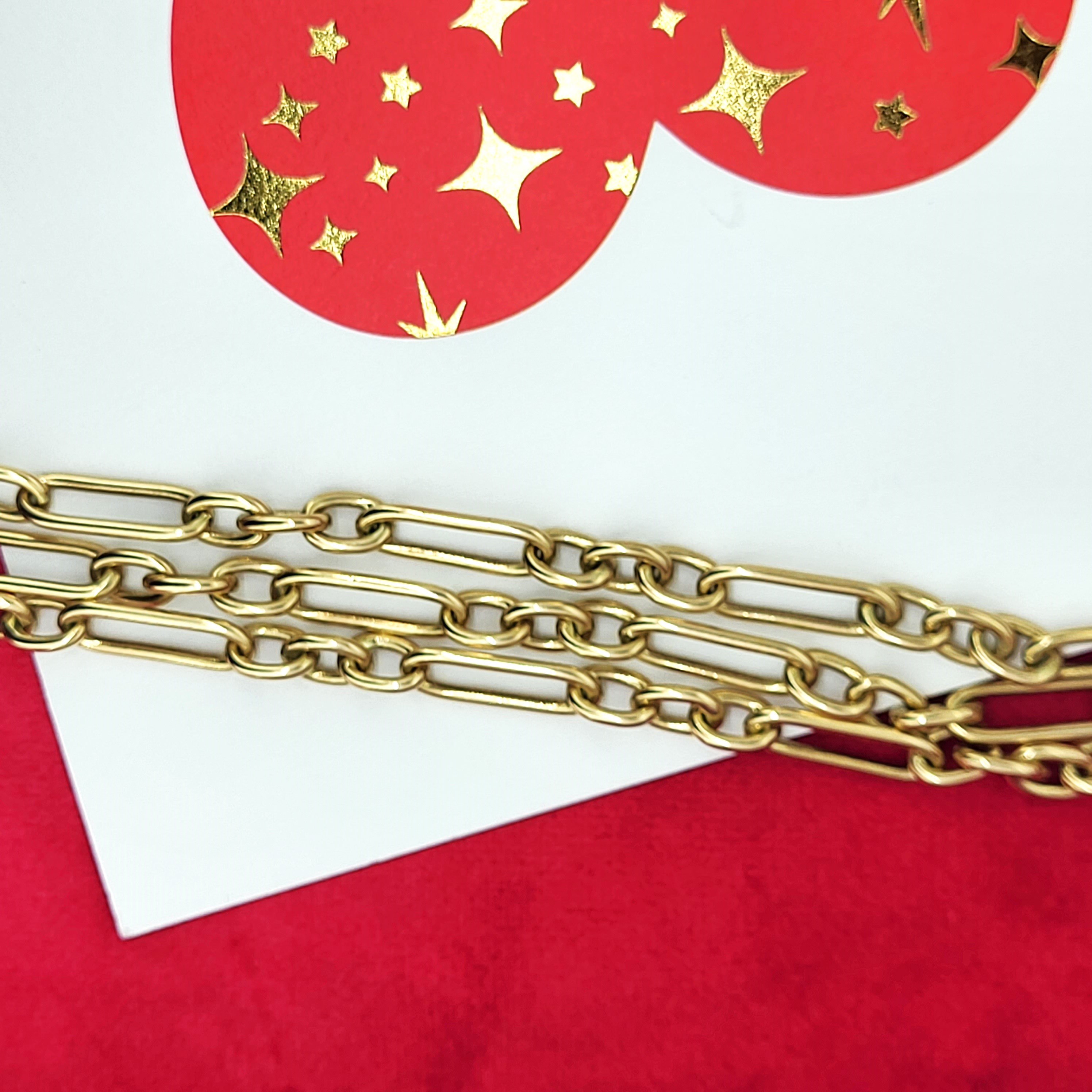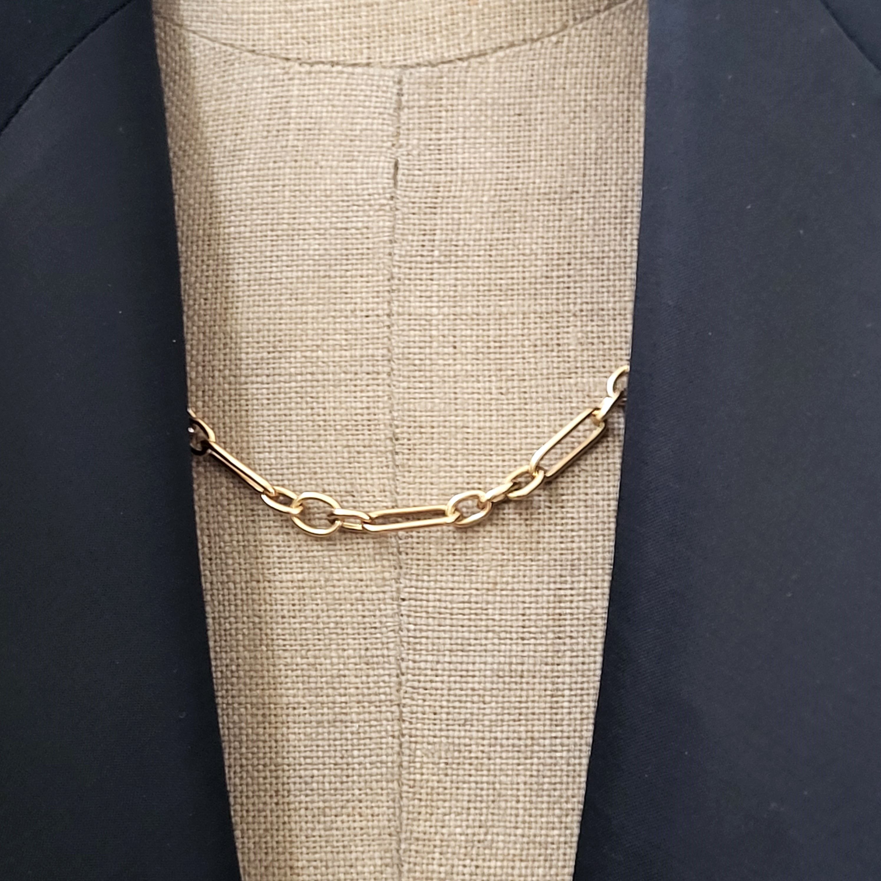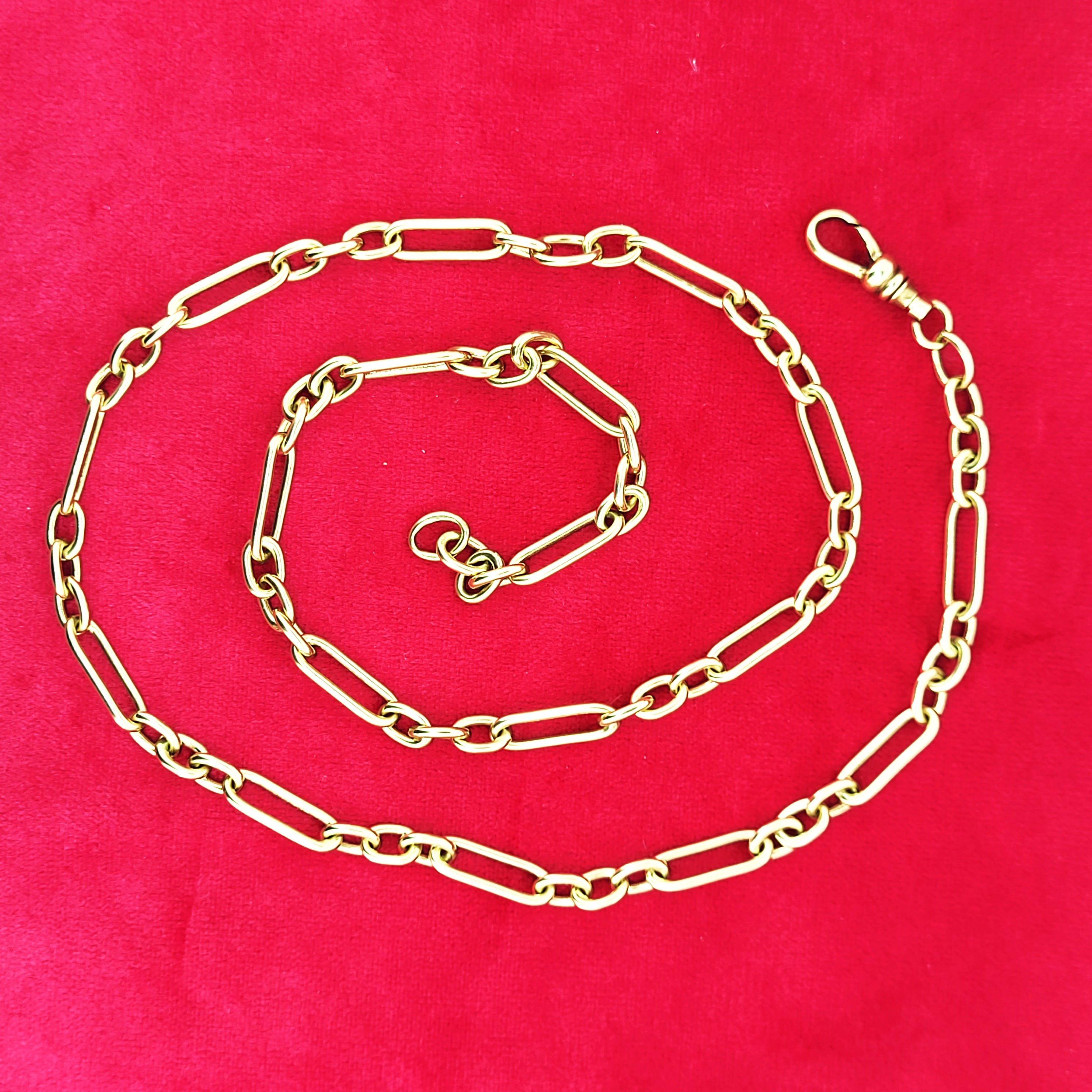 The necklace features uniformed Figaro links and is fitted with a Swivel fitting for security. It can be worn as it is or layered up with other necklaces to create a "neck-mess" effect. It could also have pendants or fobs attached.
